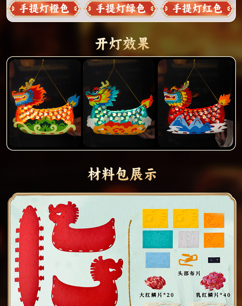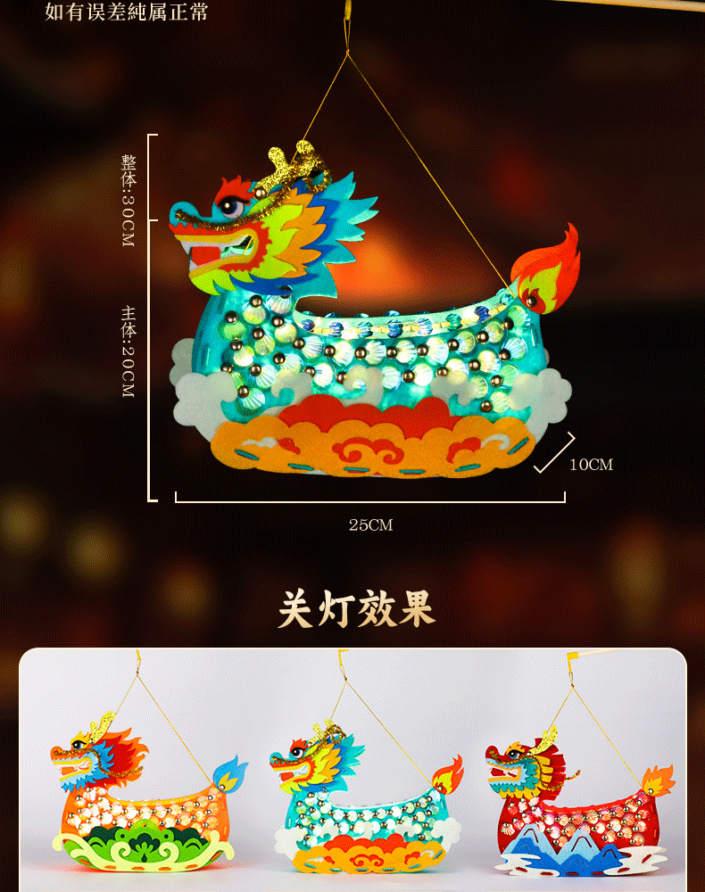 2026马年春节新年龙船模型儿童手提发光手工灯笼中国风diy材料包 投诉