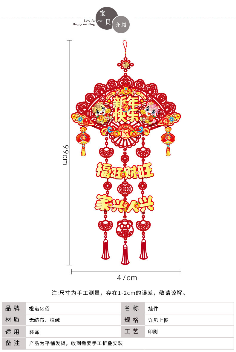 2026新年挂件马年新款三层装饰客厅门贴门挂春节挂饰场景布置福字2026喜迎新春新款立体福字挂件搬家装饰门贴新年过节家用布置挂饰