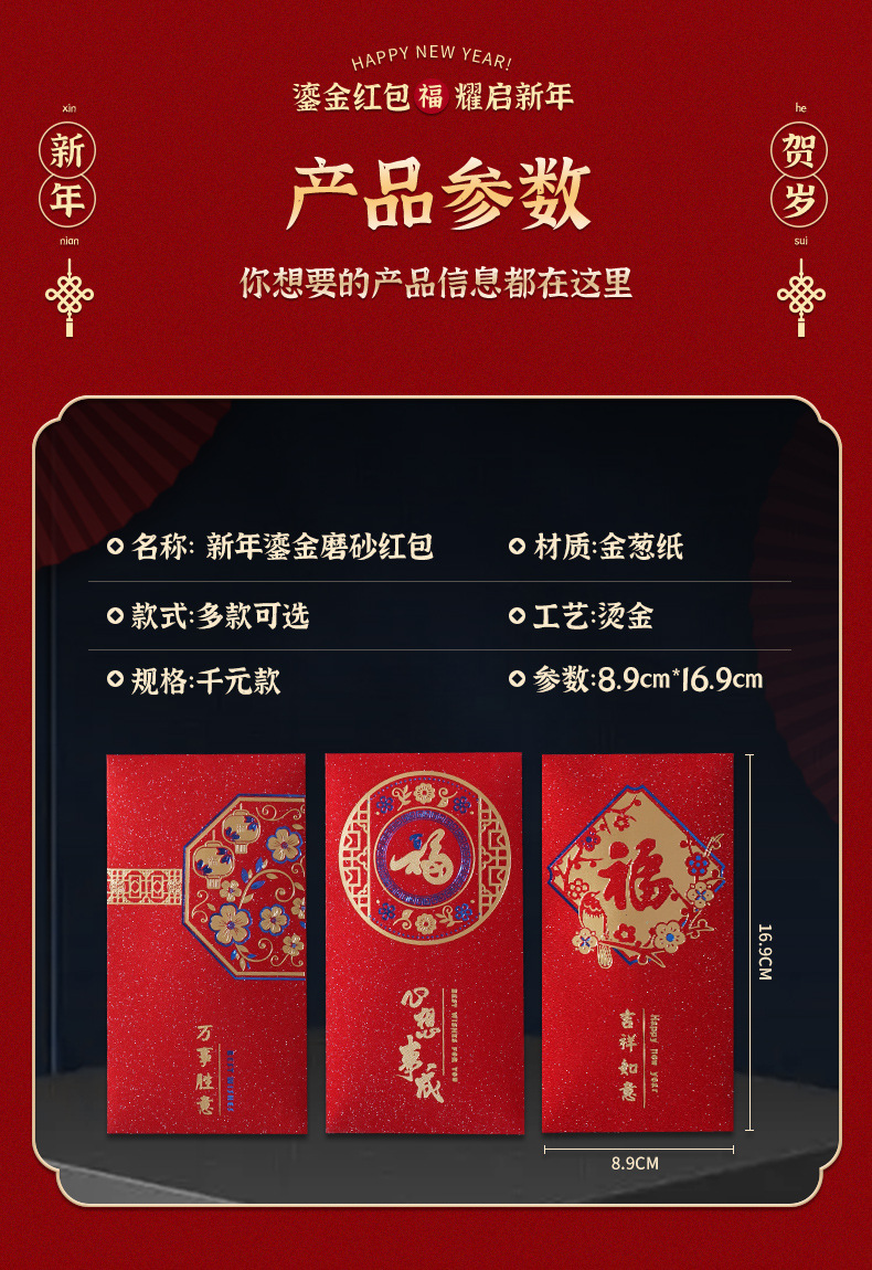 | 新年双色烫金红包【6个装】 | ¥198 | 8438件可售 |
