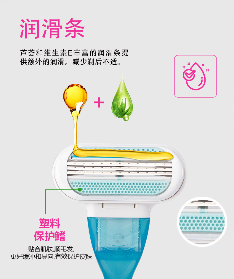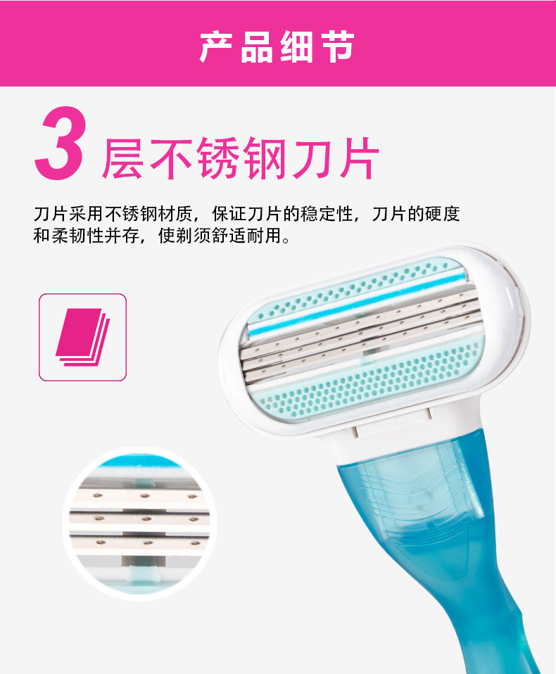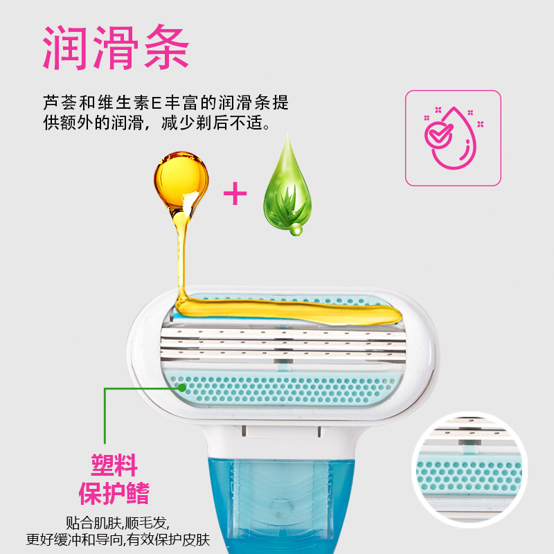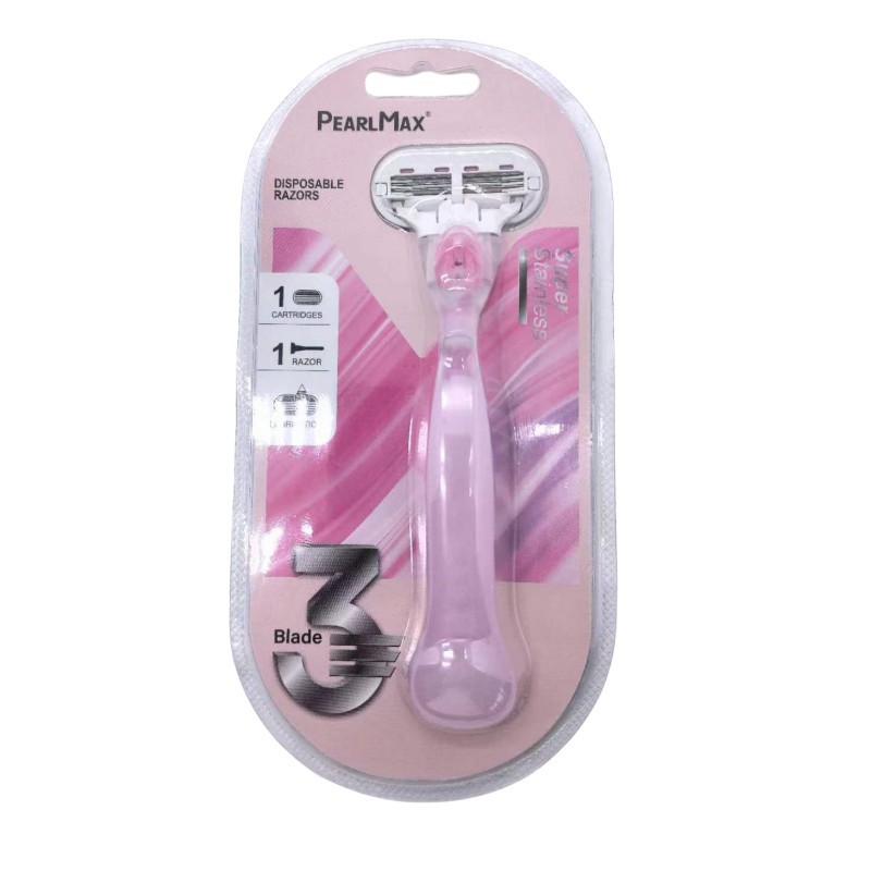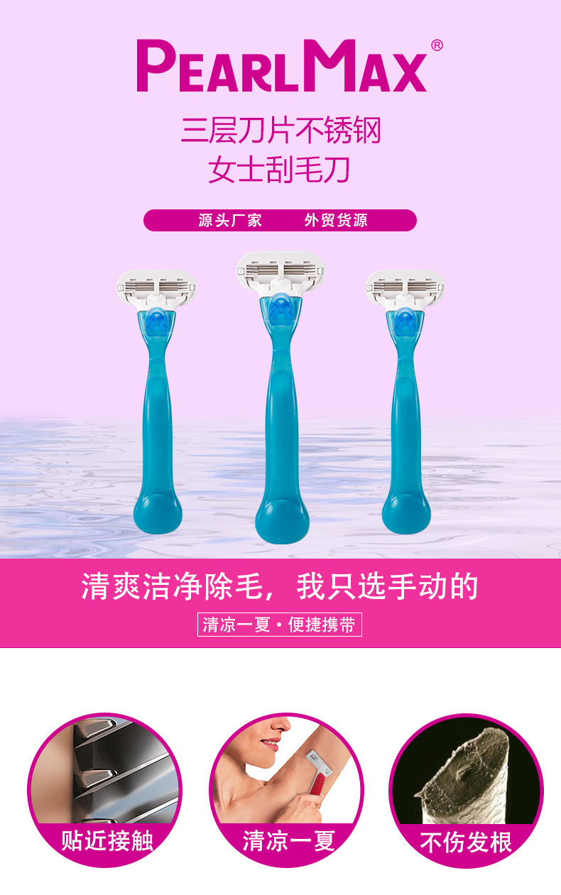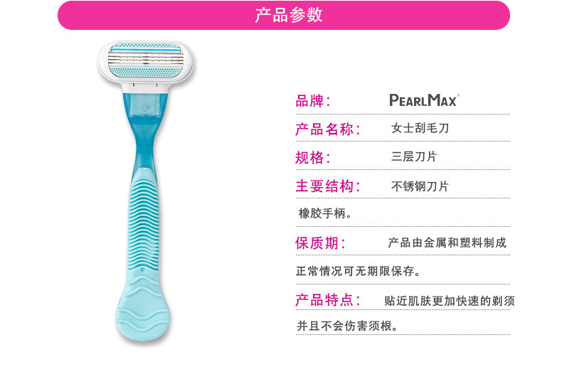 Pearl Max女士剃毛刀,三层刀片设计,顺滑脱毛,全身适用。核心卖点:润滑条减少刺激,精准剃须。优势:高效安全,解决毛发困扰。