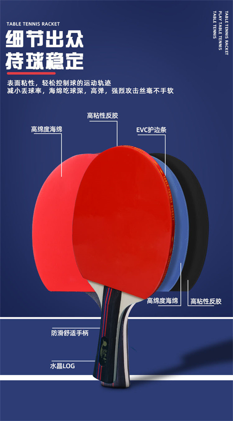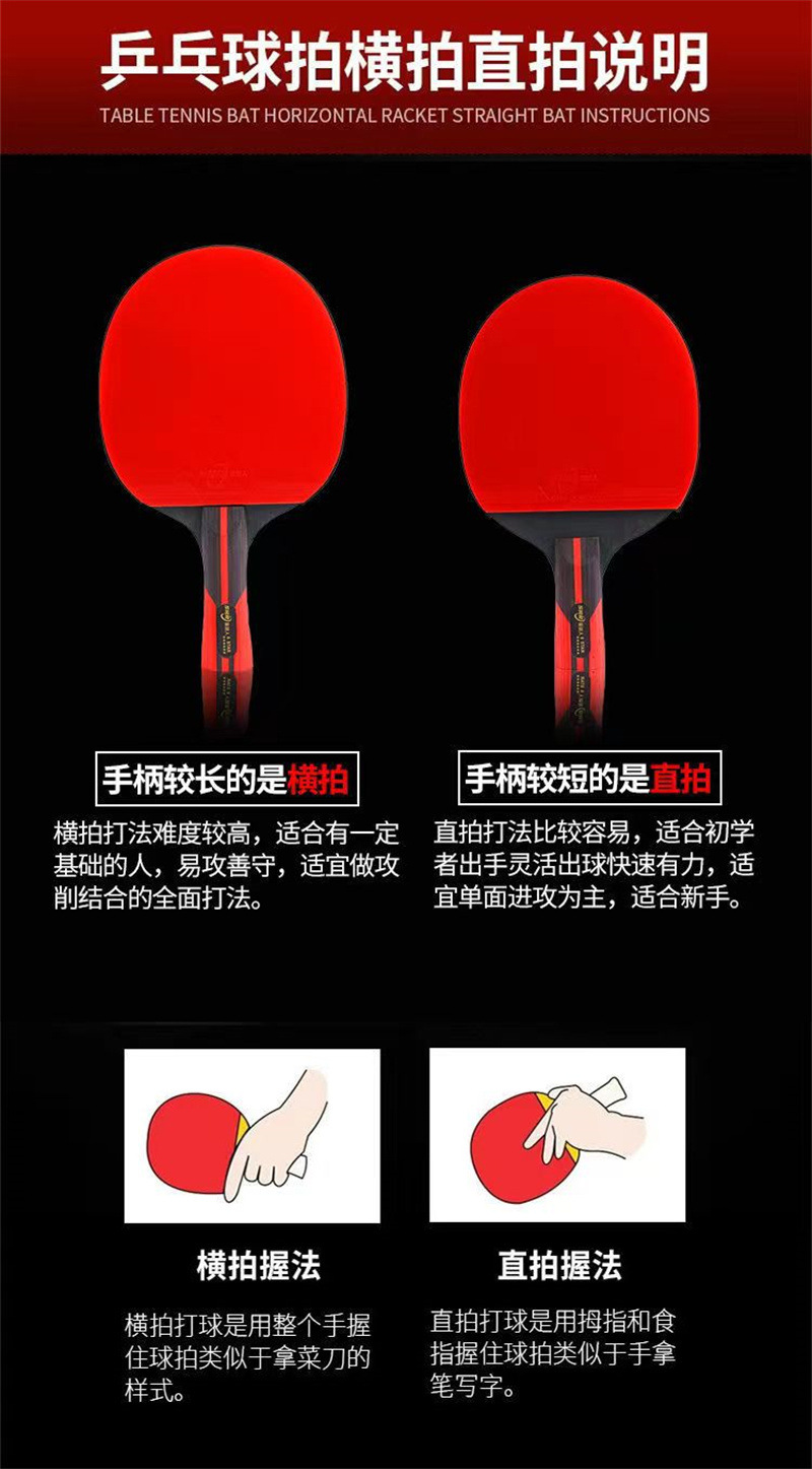 厂家直销六星级乒乓球拍套装双面反胶成品拍直拍横拍2只球拍套装 English | 投诉