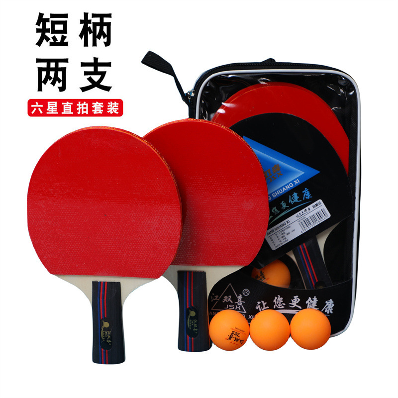 厂家直销六星级乒乓球拍套装双面反胶成品拍直拍横拍2只球拍套装