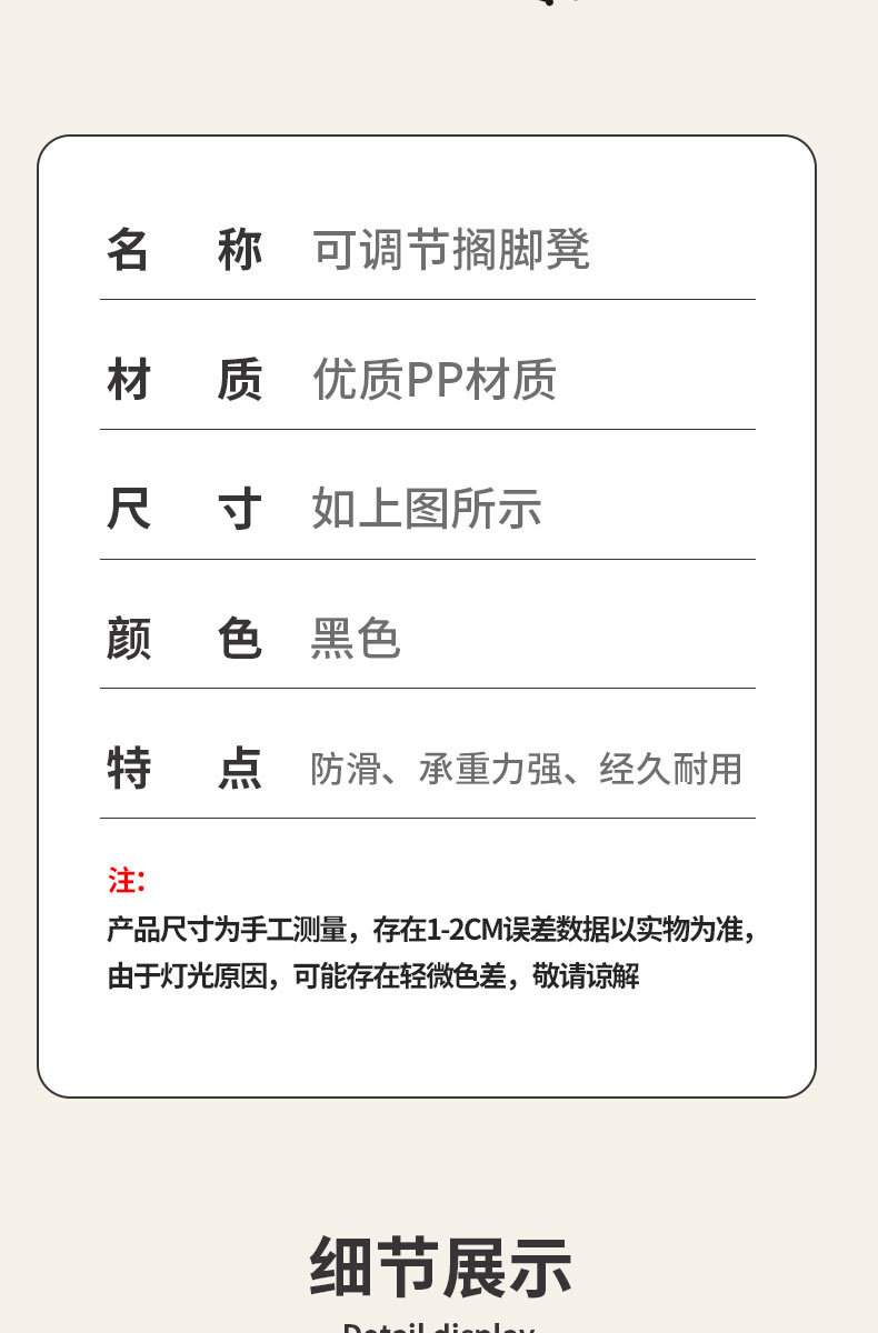 材质: 塑料 风格: 现代简约 适用对象: 儿童,成人 货号: HR-办公室垫脚凳 可否定做: 不可以 可否折叠: 不可以 内部填充物: 无 品牌: 好尔【家具】 型号: 搁脚凳 规格: 42*31*19.5cm 是否跨境出口专供货源: 否 是否一般纳税人: 是 是否有专利: 否 功能: 多功能 是否有3D模型: 否 重量: 0.5 kg/张