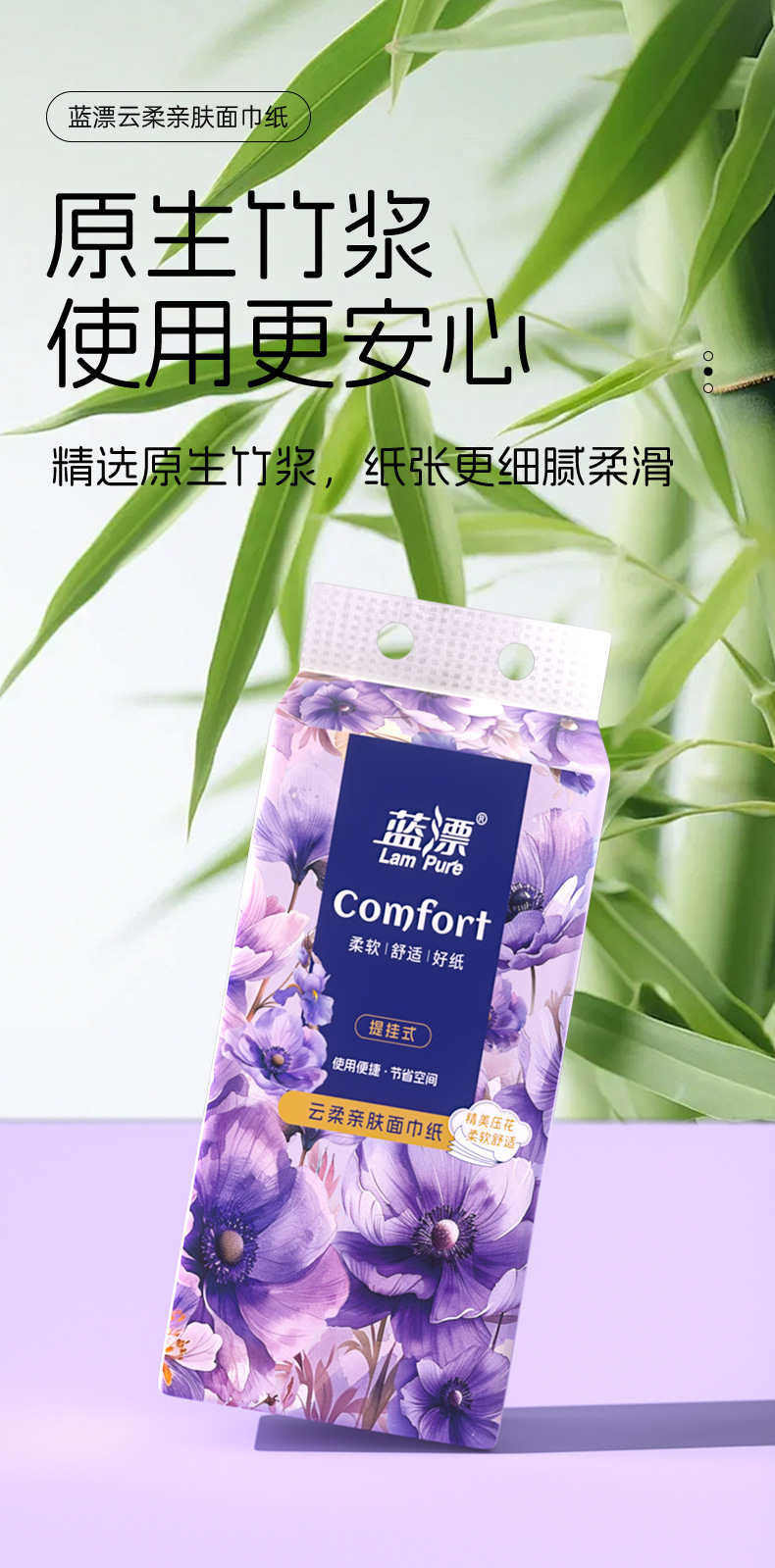 材质: 原生竹浆 品牌: Lampure/蓝漂 纸品等级: 合格品 是否进口: 否 型号: LP-54192 纸巾尺寸(cm): 170x120mm 包装尺寸(cm): 170x120mm 保质期: 3年 重量: 其他 适用送礼场合: 婚庆,旅游纪念,节日,乔迁,商务馈赠 加印LOGO: 不可以 加工定制: 是 货号: LP-54192 层数: 三层 是否印花: 无 是否含香味: 无 原料成分: 原生竹浆 是否量贩装: 是 是否跨境出口专供货源: 否 抽数: 200 重量: 0.5 kg/提
