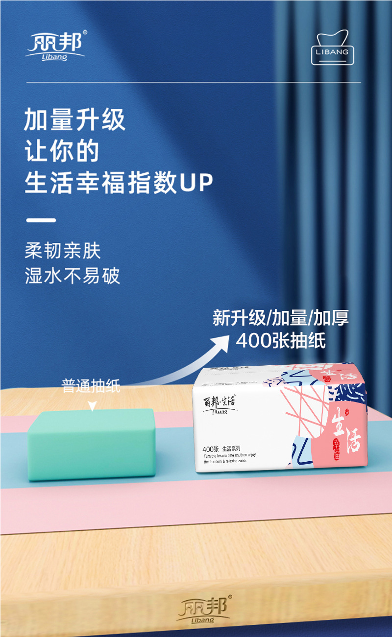 丽邦生活4层抽纸400张20大包家用实惠整箱纸巾餐巾纸卫生纸一件代 English | 投诉