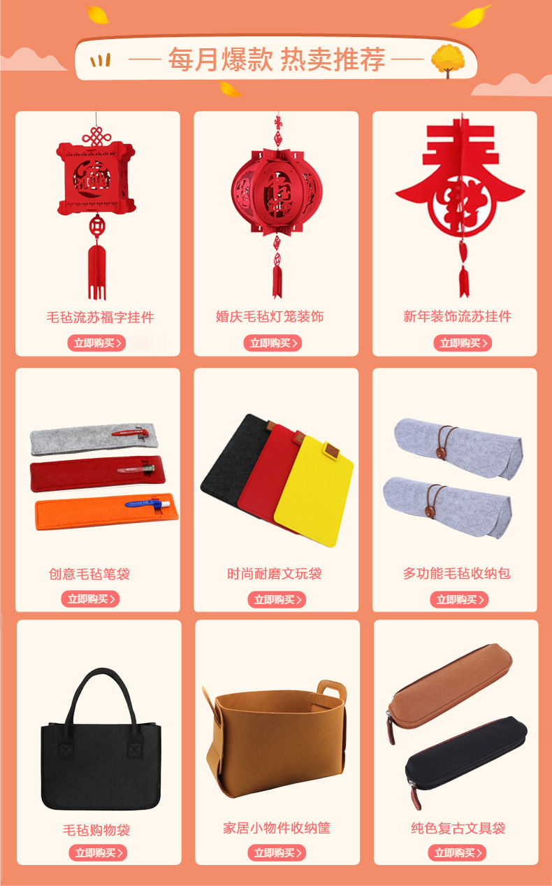 南宫市锘锘毛毡制品厂是毛毡面具、毛毡手提包、毛毡电脑包、毛毡手机包、毛毡钱包、各种毛毡制品等产品专业生产加工的公司,拥有完整、科学的质量管理体系。南宫市锘锘毛毡制品厂的诚信、实力和产品质量获得业界的认可。欢迎各界朋友莅临参观、指导和业务洽谈。
