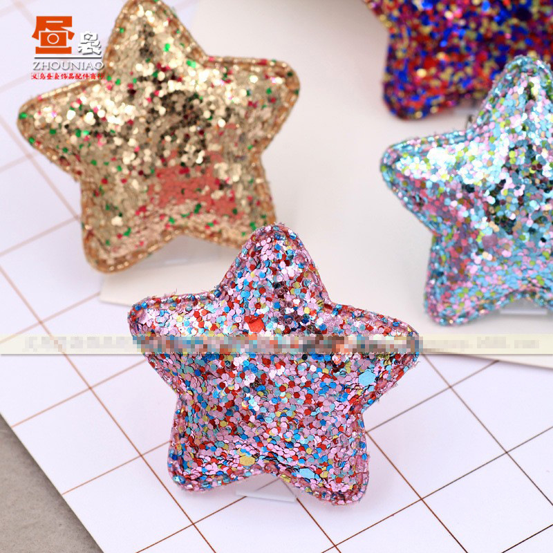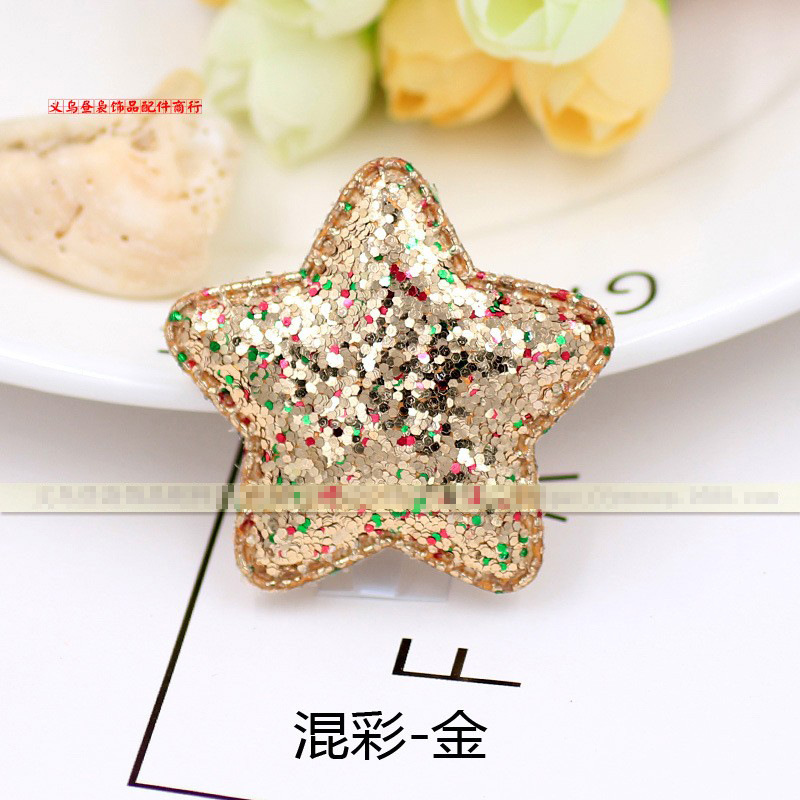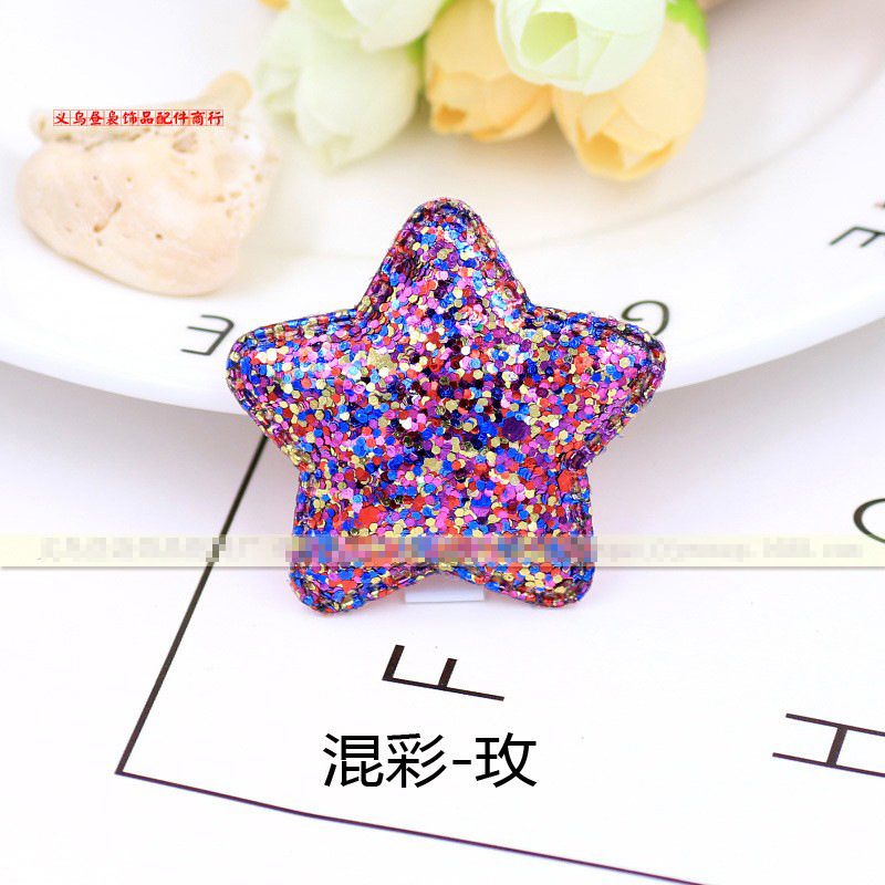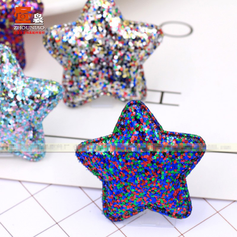 每色的五角星都是以一个亮片的颜色为主,搭配其他颜色的亮粉,非常的闪亮。用于发夹发箍上使用韩版风格