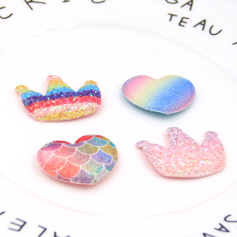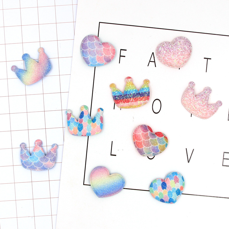 【名称】韩版七彩渐变混色亮粉布小爱心皇冠烘焙插排插旗蛋糕装饰饰品配件