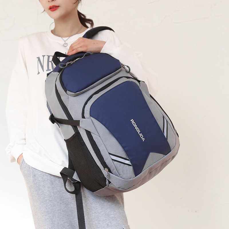 材质: 牛津布 容量: 20-35L 容纳电脑尺寸: 16寸 里料质地: 涤纶 背负系统: 气垫背带 品牌: 荣利荙 货号: 3801 加盟分销门槛: 一件代发 加工方式: 拼接 图案: 荣利荙logo 进口地: 中国 风格: 街头潮流 流行元素: 拼接 颜色: 红色,绿色,蓝色,黑色,深蓝色,粉色 尺寸: 20寸 上市年份季节: 2020年冬季 适用场景: 休闲旅行 适用性别: 中性/男女均可 重量: 0.3 kg/个