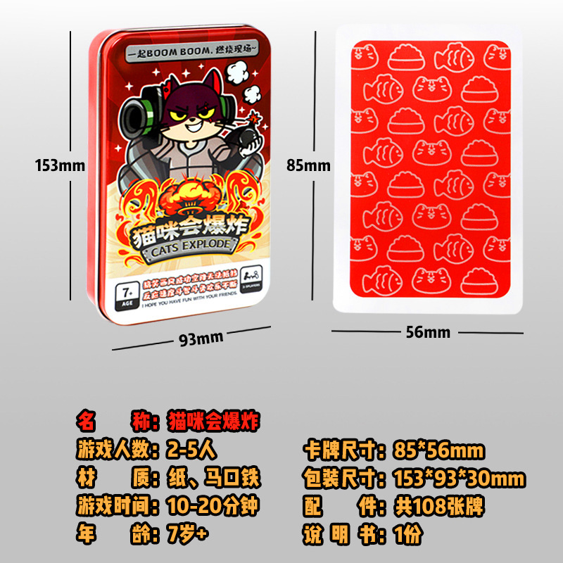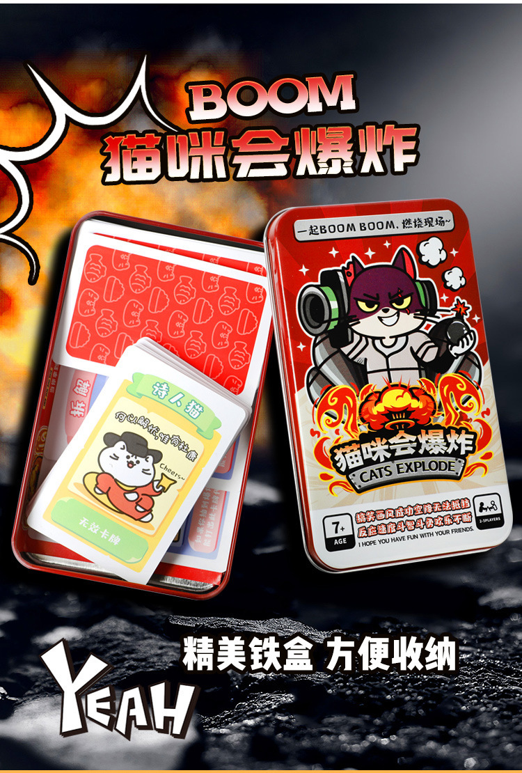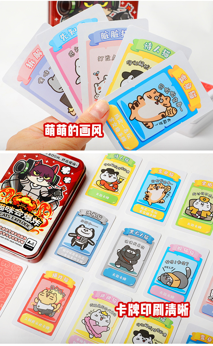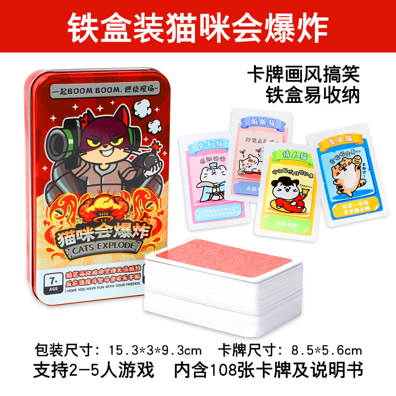 猫咪会爆炸小猫咪炸弹猫铁盒装桌游中文成年休闲聚会桌面游戏卡牌