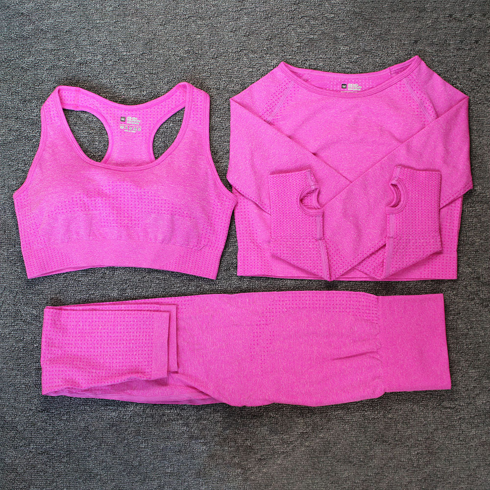 欧美无缝针织点点两件套文胸背心长裤套装女春夏健身衣翘臀瑜伽服   欧美无缝点点两件套短袖长裤套装女批发提臀弹力运动健身瑜伽服   欧美无缝点点两件套长袖长裤健身套装女高腰紧身运动跑步瑜伽服   欧美亚马逊无缝瑜伽服女套装专业运动跑步健身服短袖短裤两件套