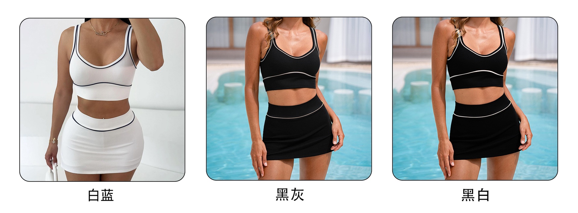 撞色U形领口