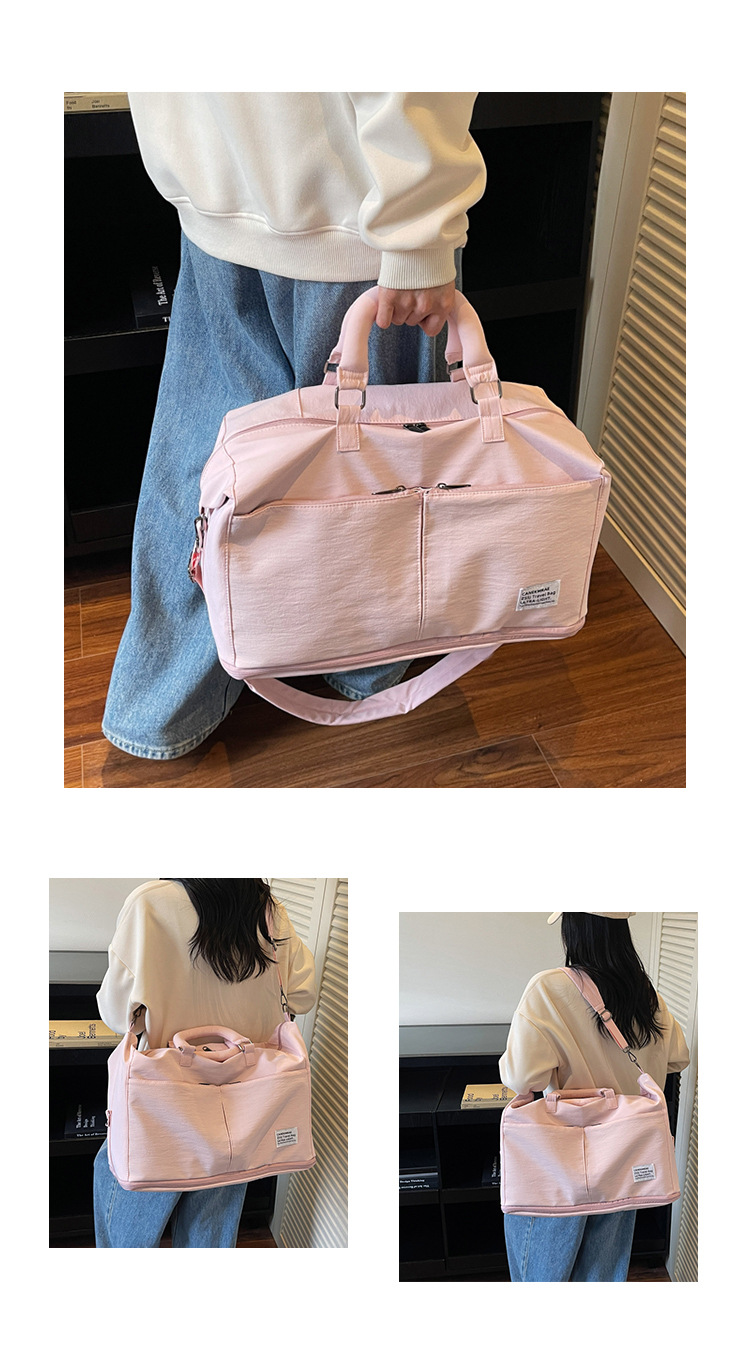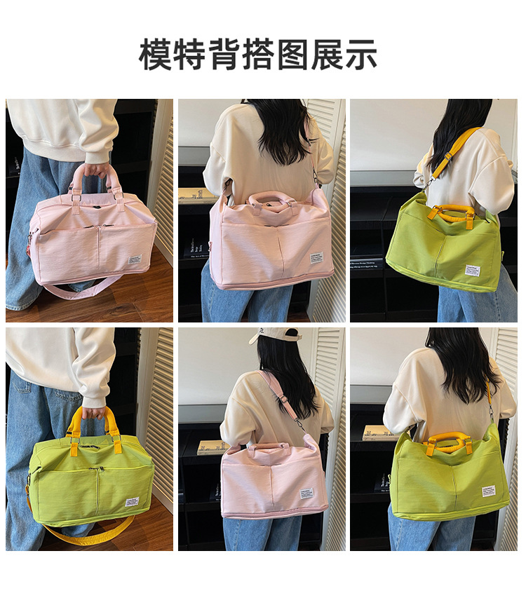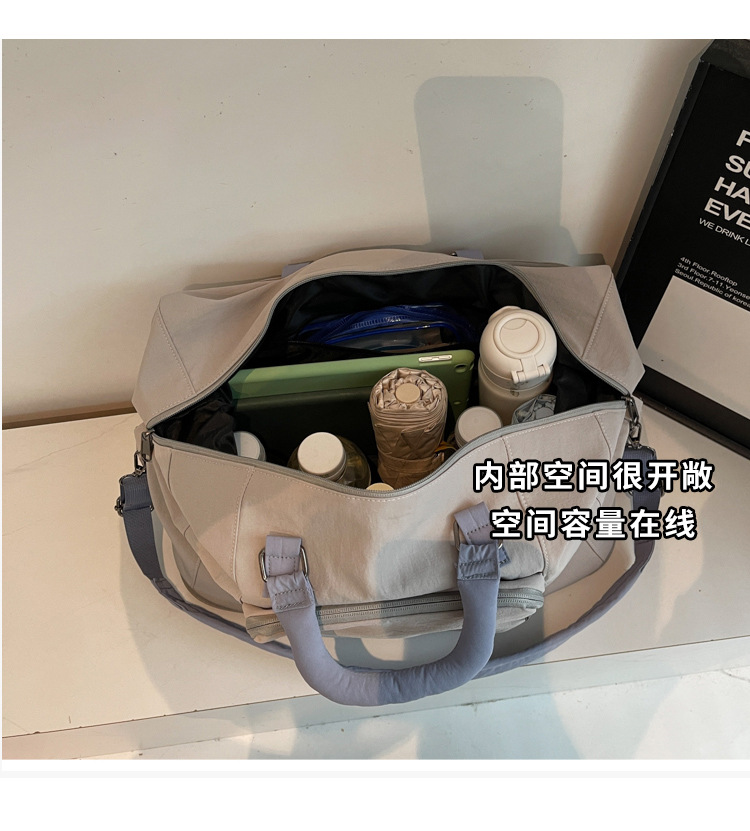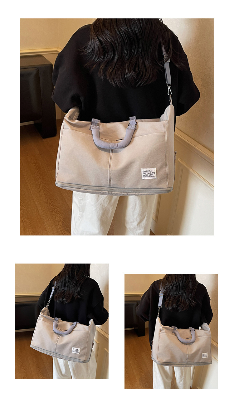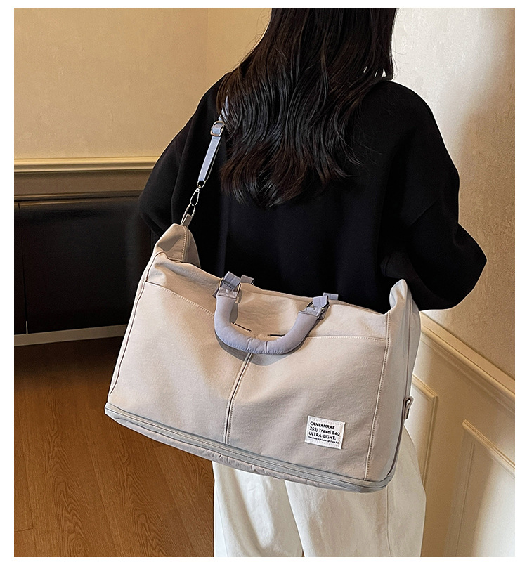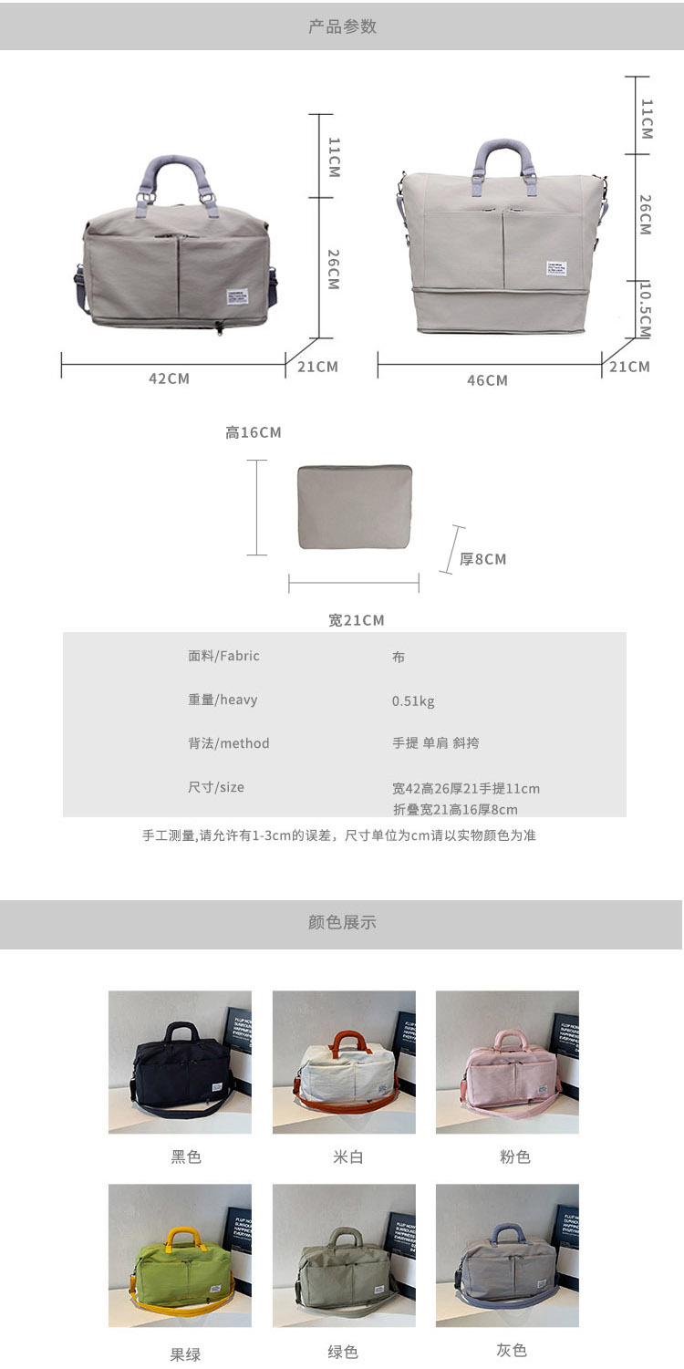 材质: 牛津布 功能: 耐磨,扩容,干湿分离 容量: 20-35L 里料质地: 涤纶 适用场景: 休闲旅行 品牌: 槿茂 适用性别: 中性/男女均可 货号: 1636 图案: 纯色 风格: 休闲旅行 流行元素: 车缝线 颜色: 米白色,黑色,果绿色,军绿色,灰色,粉色 上市年份季节: 2025年秋季 重量: 0.5 kg/个