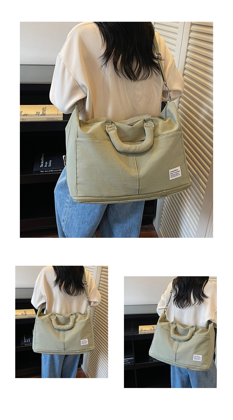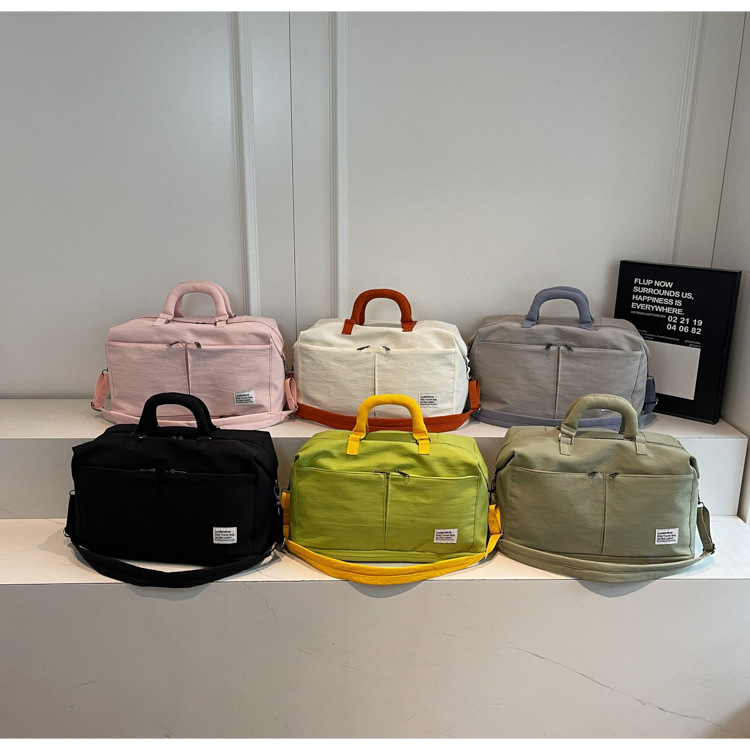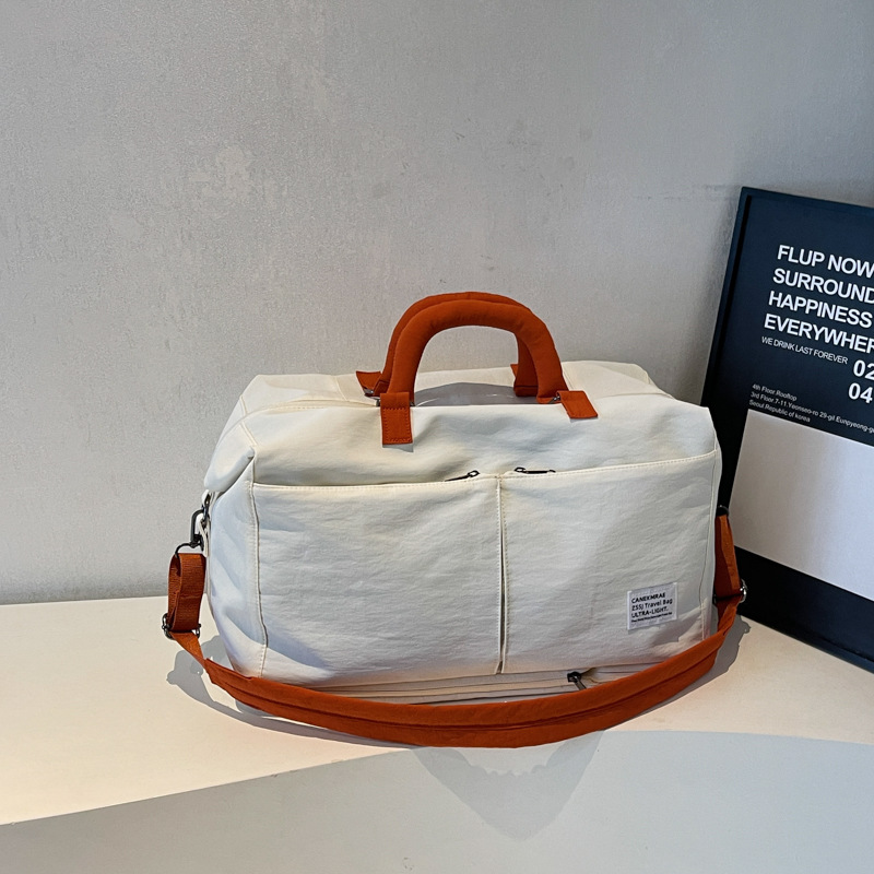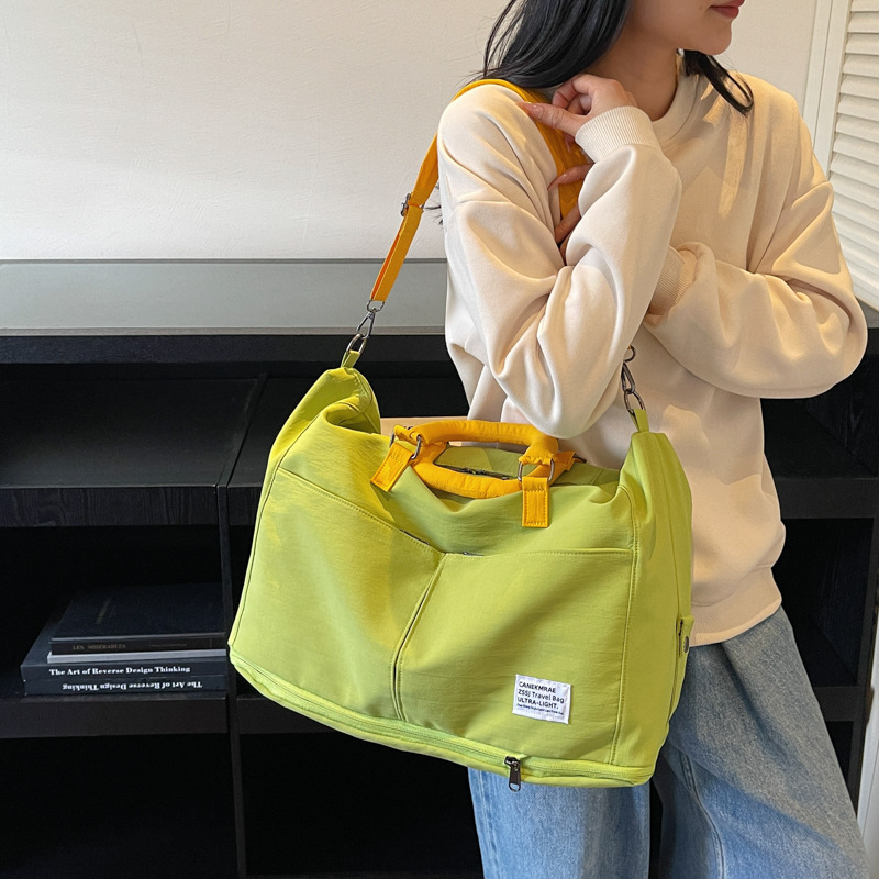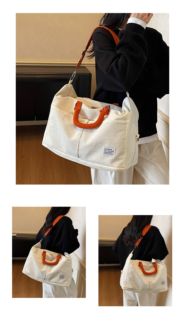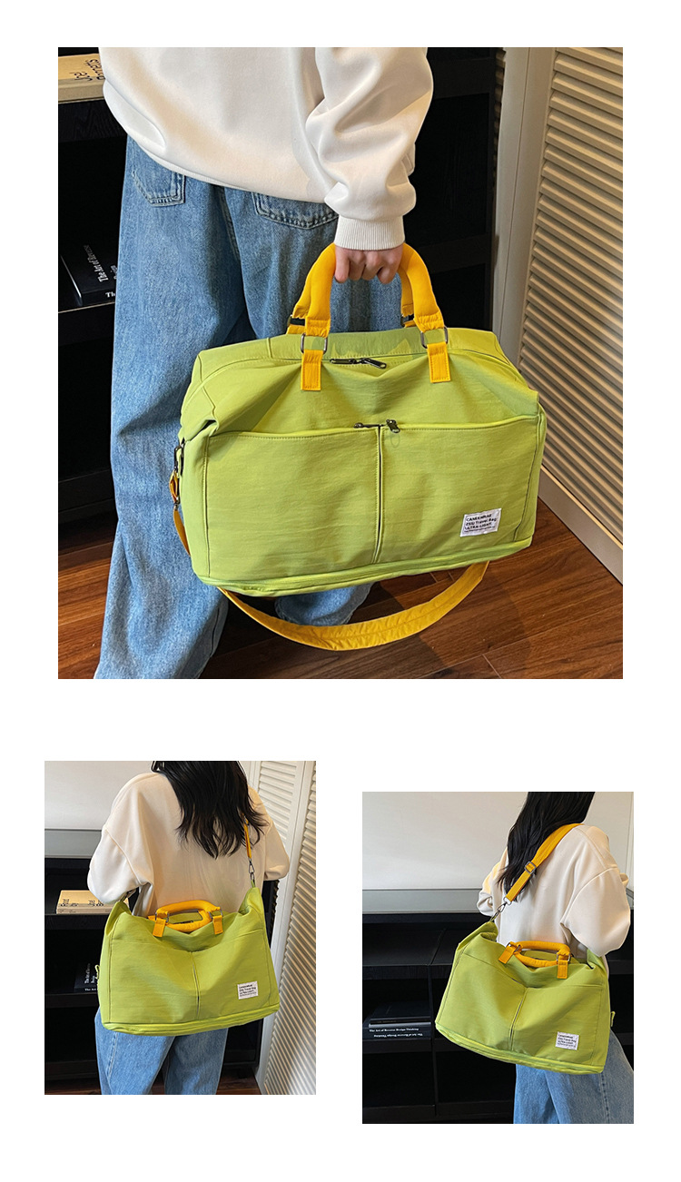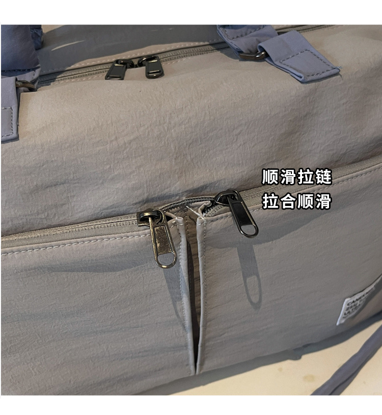 材质: 牛津布 功能: 耐磨,扩容,干湿分离 容量: 20-35L 里料质地: 涤纶 适用场景: 休闲旅行 品牌: 槿茂 适用性别: 中性/男女均可 货号: 1636 图案: 纯色 风格: 休闲旅行 流行元素: 车缝线 颜色: 米白色,黑色,果绿色,军绿色,灰色,粉色 上市年份季节: 2025年秋季 重量: 0.5 kg/个