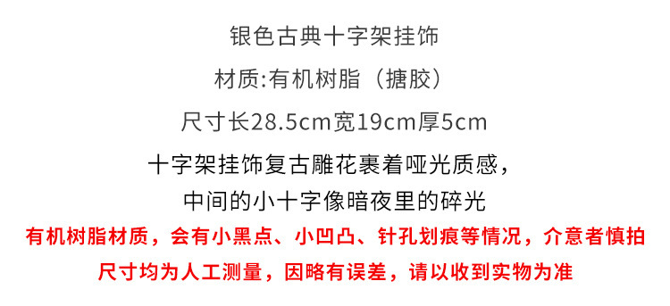 材质: 其它 类别: 壁饰 品牌: 细题 风格: 复古风 颜色: 黑色 产地: 义乌 产品编号: TJ007 规格: 十字架挂饰黑色,十字架挂饰白色,十字架挂 支持支付宝: 支持 包装: 普通包装 是否进口: 否 货号: TJ007 主要下游平台: ebay,亚马逊,wish,速卖通,独立 主要销售地区: 非洲,欧洲,南美,东南亚,北美,东北亚, 有可授权的自有品牌: 是 是否跨境出口专供货源: 是 空间: 客厅,卧室,书房,室外,餐厅,浴室,玄关 外观造型: 抽象 重量: 2.0 kg/个