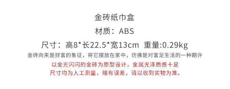 创意酒店高端纸巾筒餐巾纸盒手纸盒大气仿真金砖纸巾盒金条抽纸盒 English | 投诉