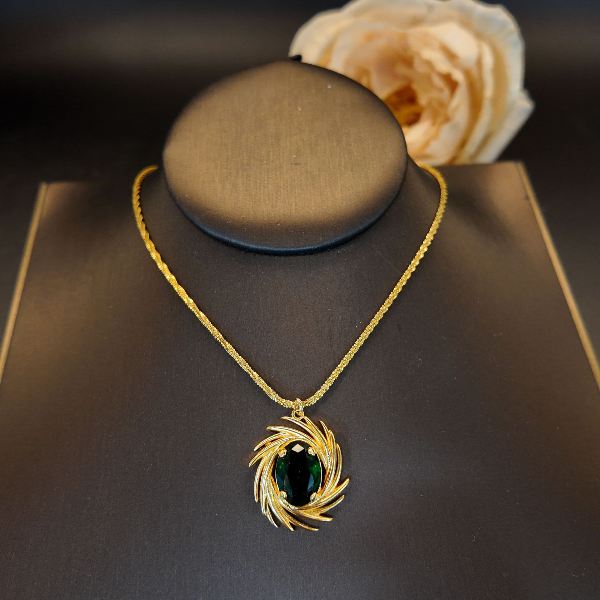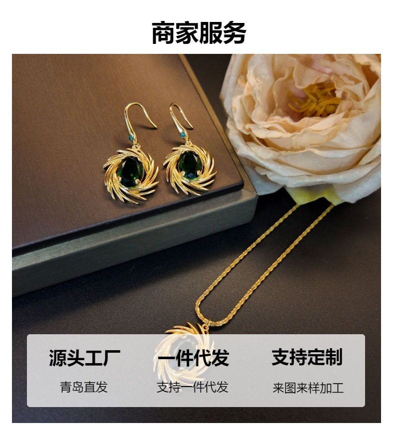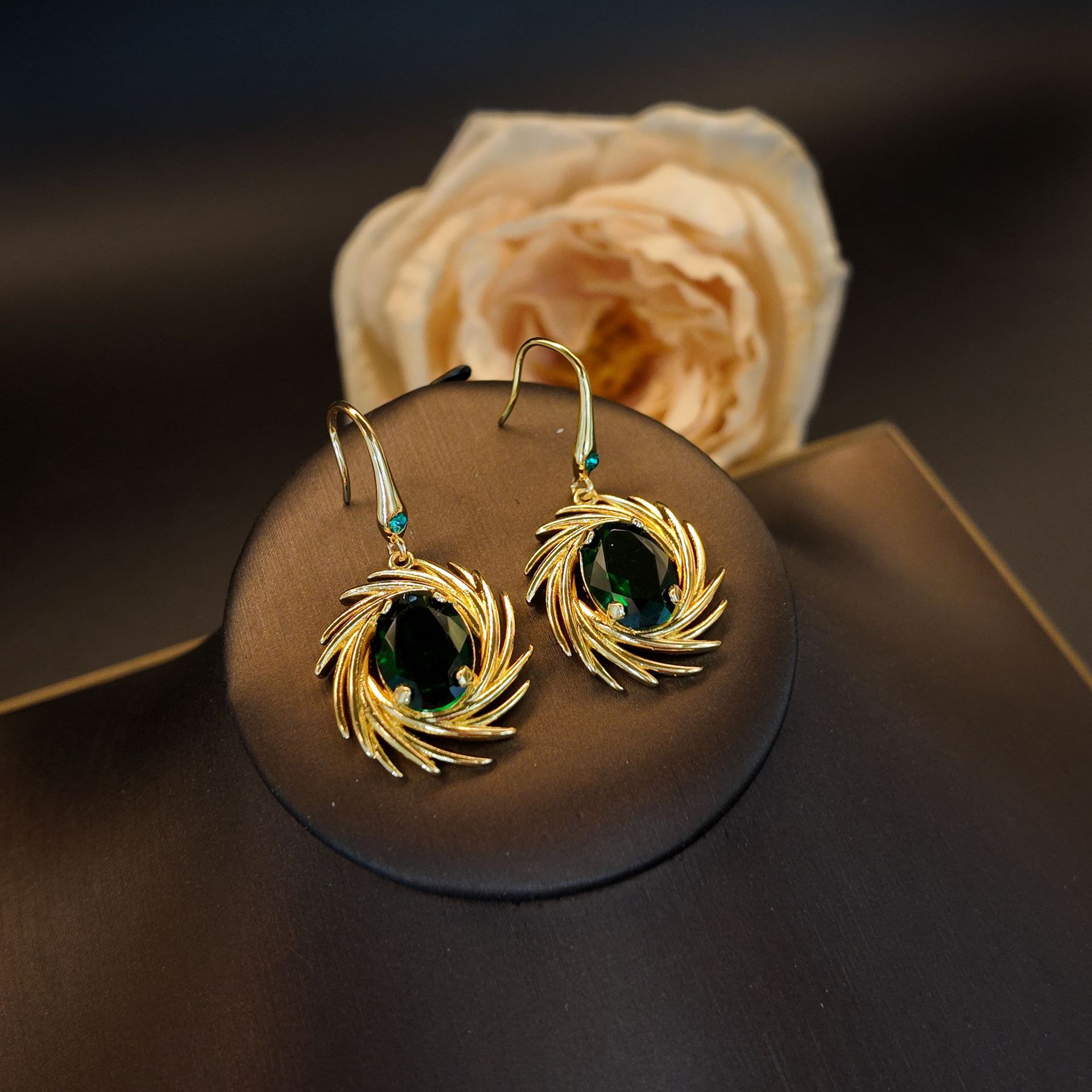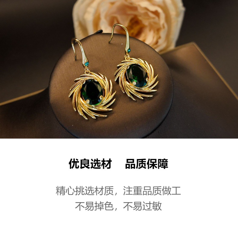 工厂定制高级感铜镶锆绿椭圆放射线条花朵耳钩女文艺复古气质饰品 English | 投诉
