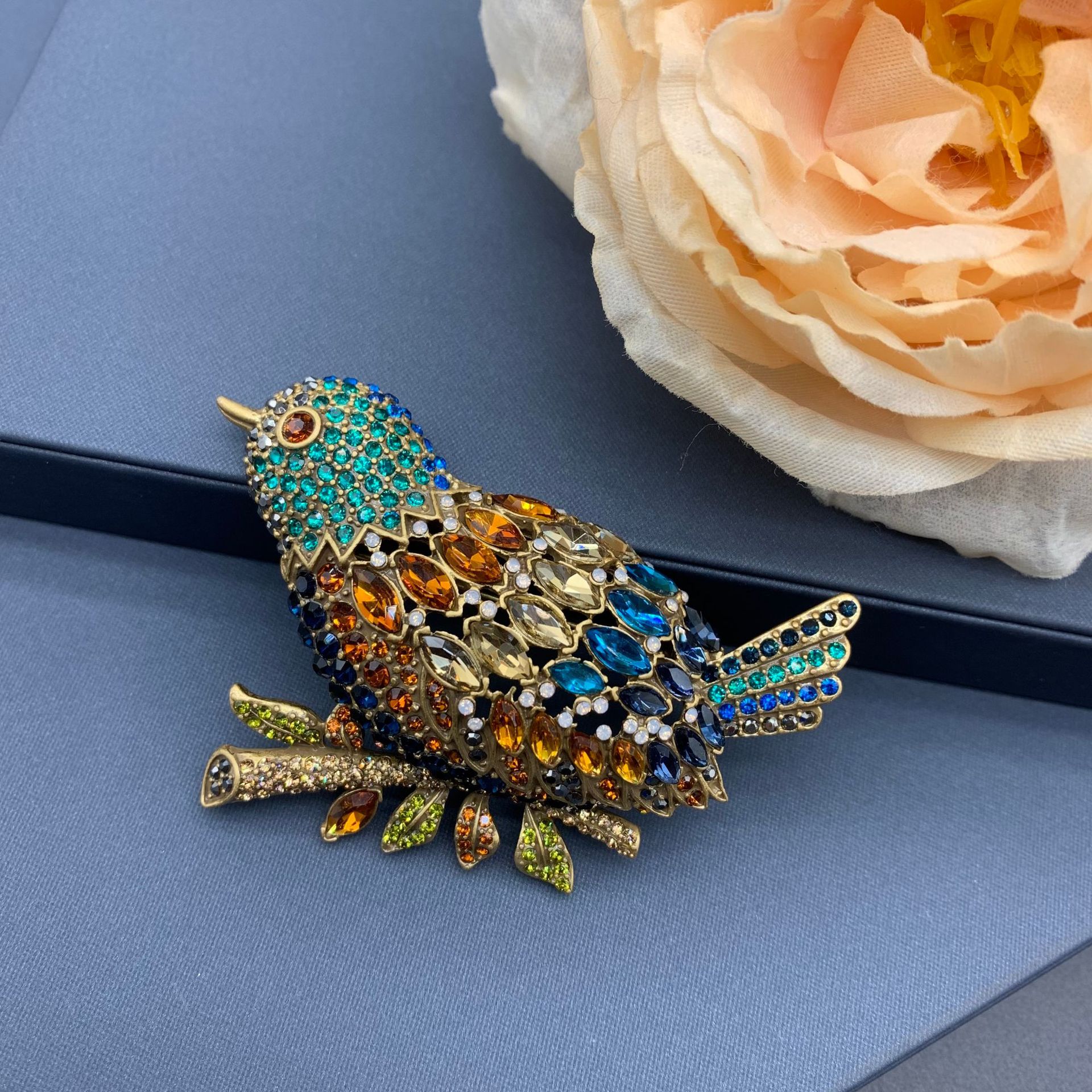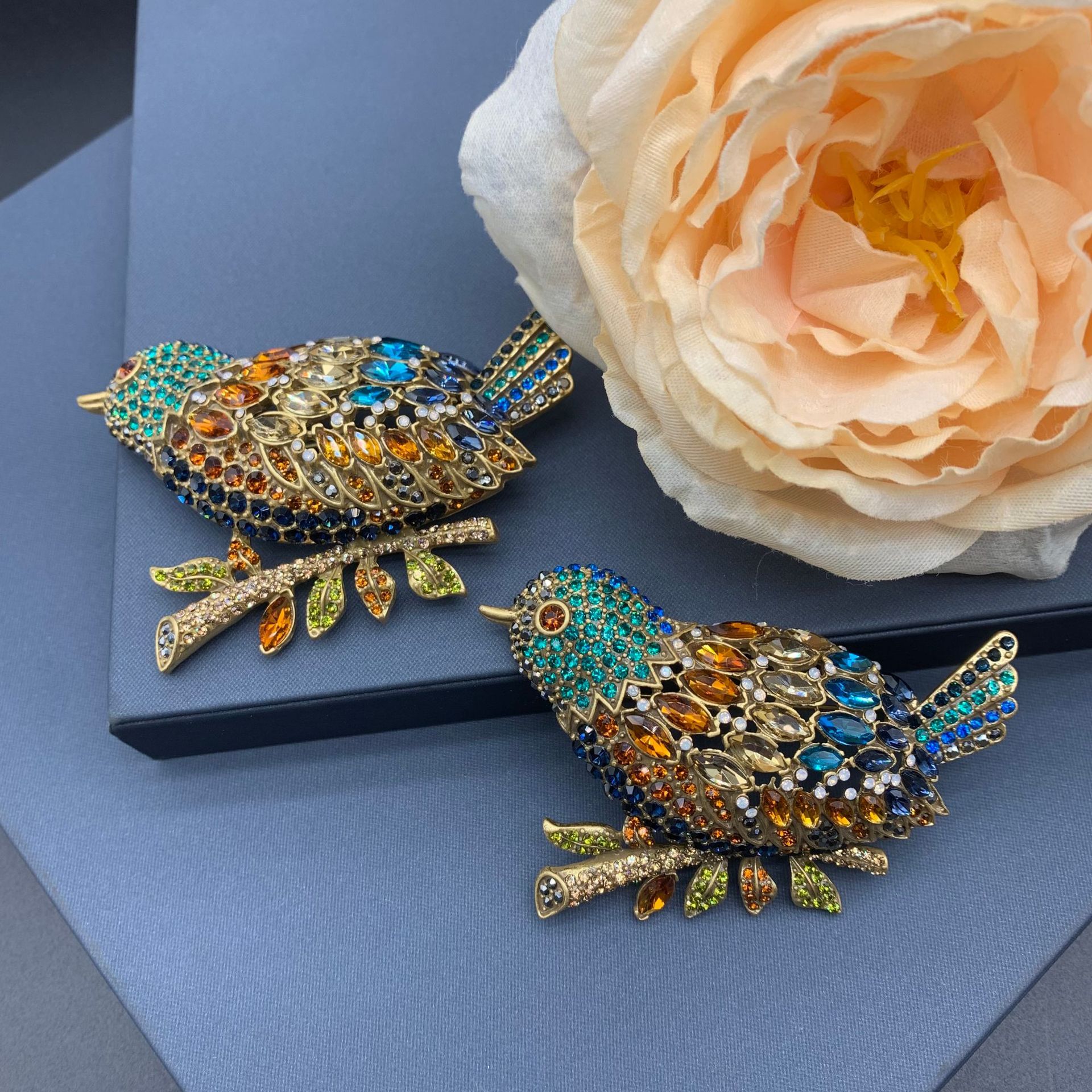 工厂定制 新款满钻镶嵌显高级感彩色小鸟胸针时尚精致复古徽章 English | 投诉