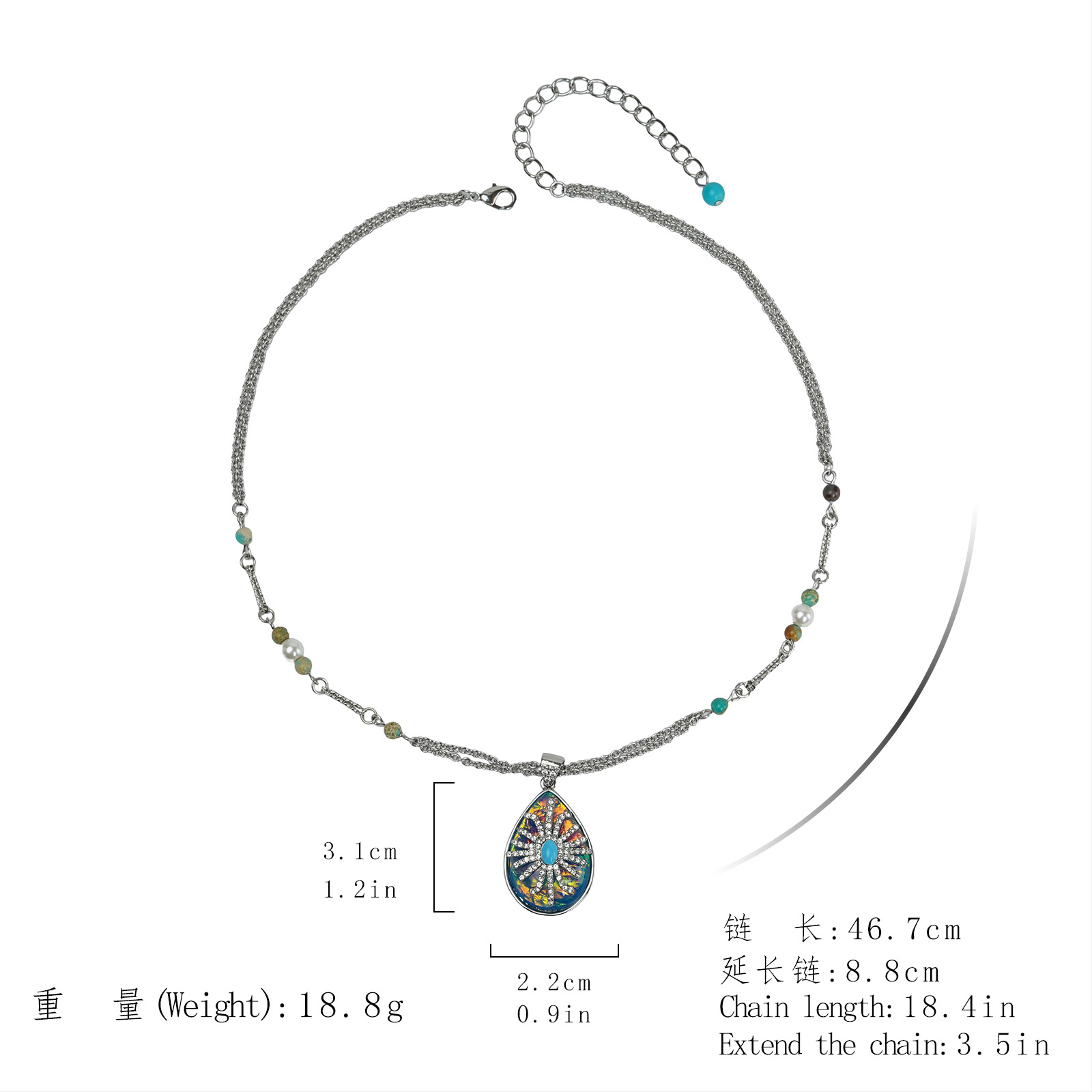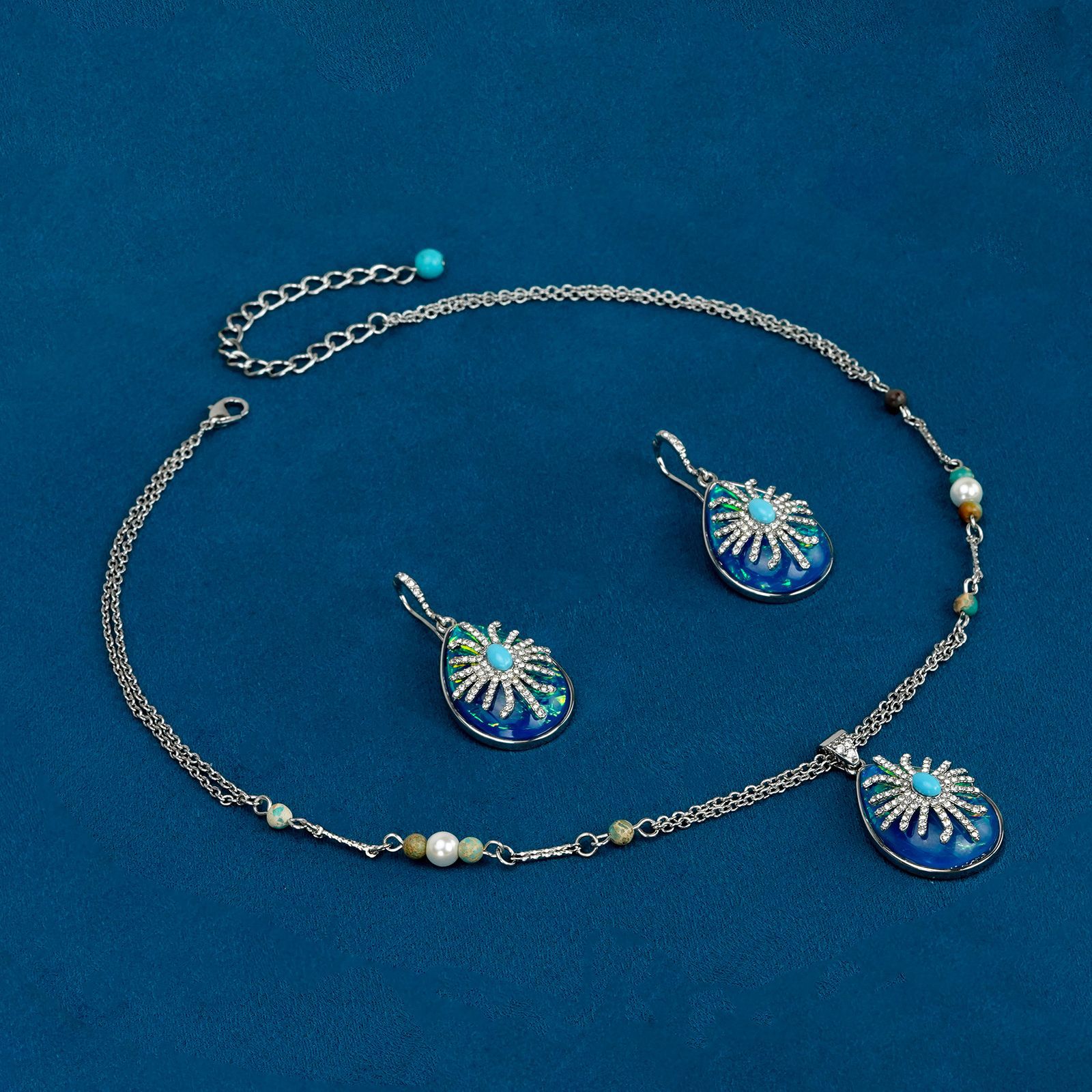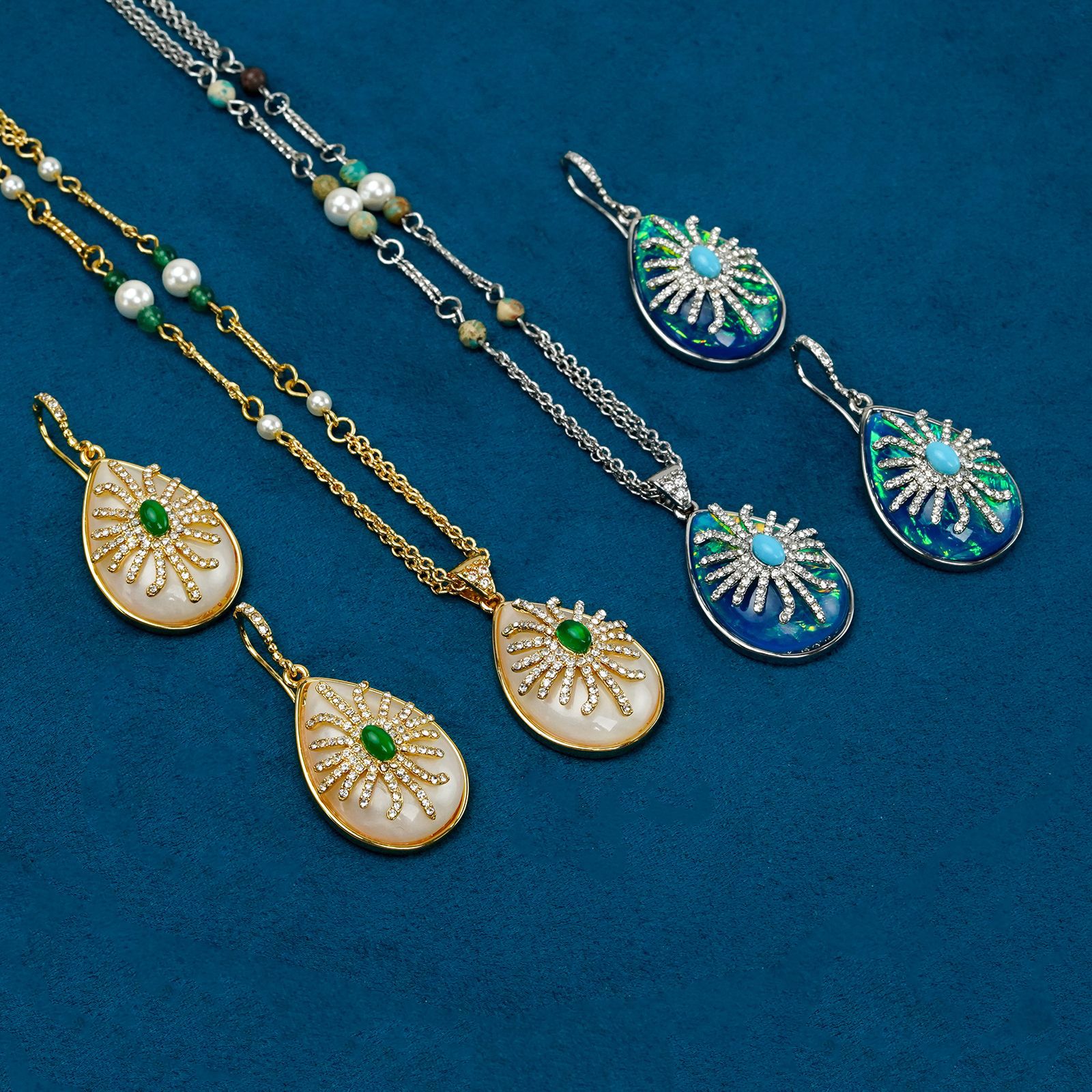 材质: 铜 坠子材质: 铜 套装组合: 耳饰+项饰 品牌: ZOAO 链子样式: 蛇骨链 流行元素: 水滴 处理工艺: 电镀 样式: 女式 货号: G1823ED-LAN G1823ED- 产地: 青岛 图案: 爱心/水滴/铃铛 颜色: 蓝色耳钉,米色耳钉,蓝色项链,米色项链 主要下游平台: 淘宝,京东,ebay,PDD,亚马逊,w 有可授权的自有品牌: 否 是否跨境出口专供货源: 是 上市年份/季节: 2025年冬季 风格: 复古 风格分类: 文艺复古 主要销售地区: 非洲,欧洲,南美,东南亚,北美,东北亚, 适用人群: 女式 重量: 0.04 kg/PCS