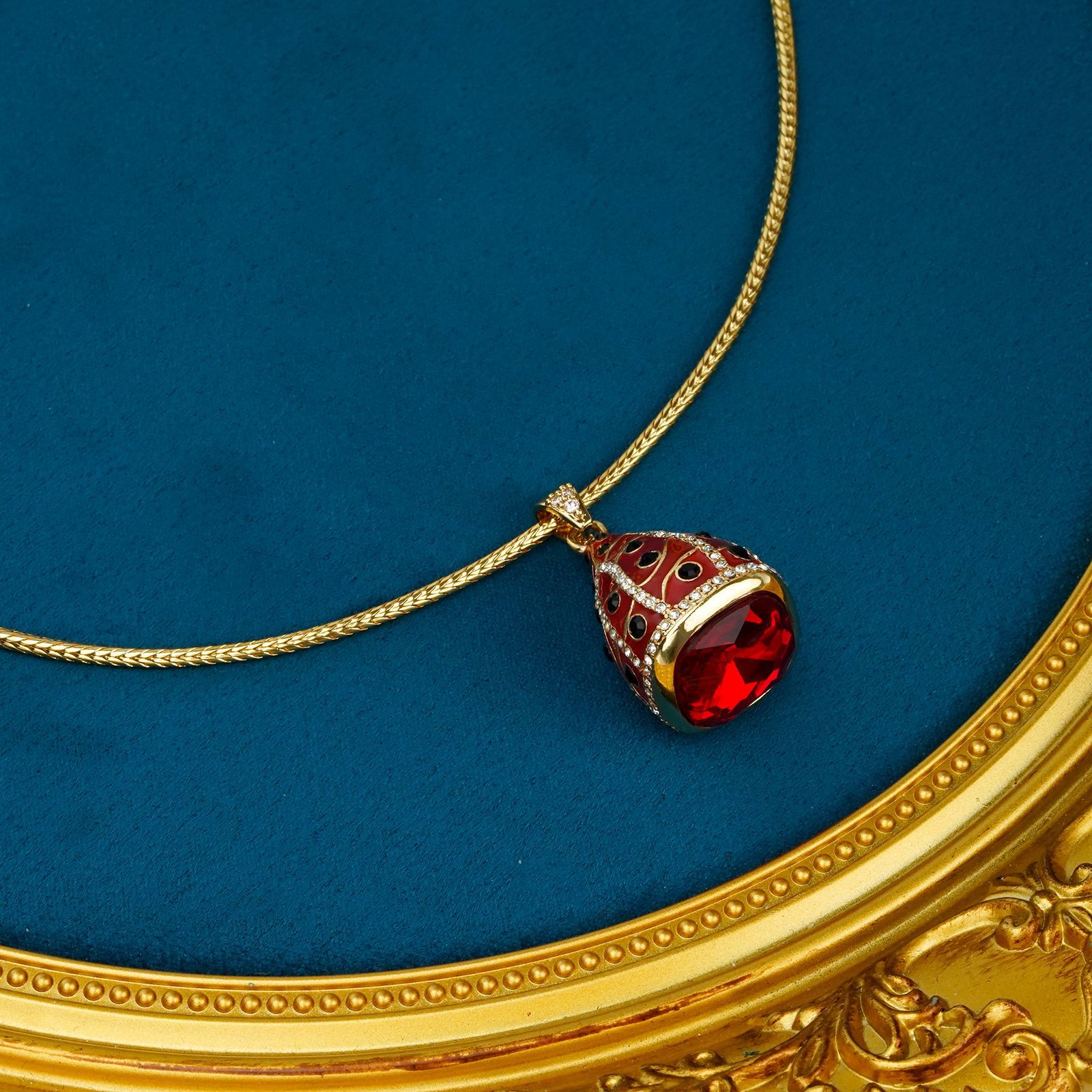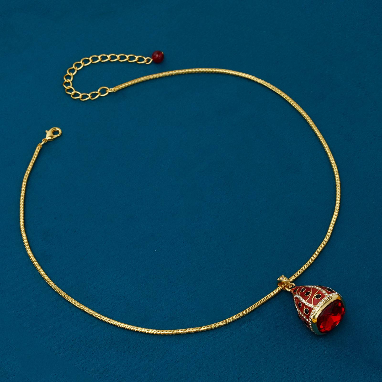 青岛中古宫廷风气质项链镀真金镶嵌红色莱茵石锁骨链时尚百搭饰品 English | 投诉