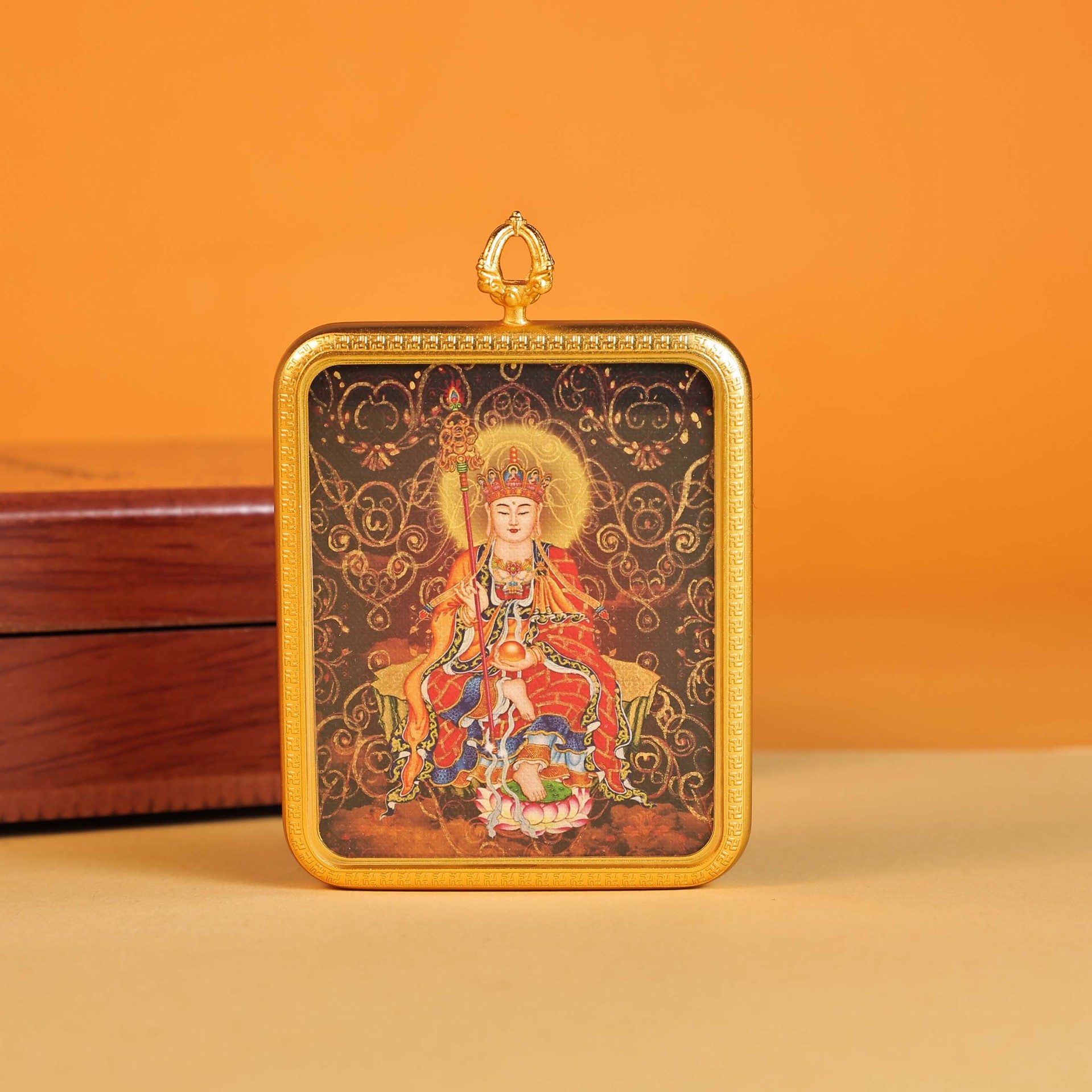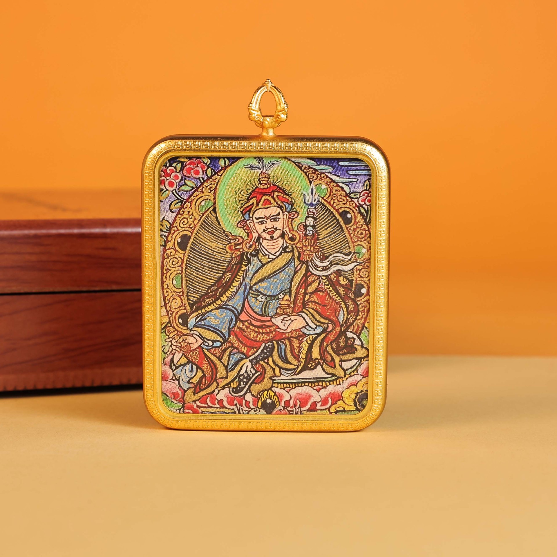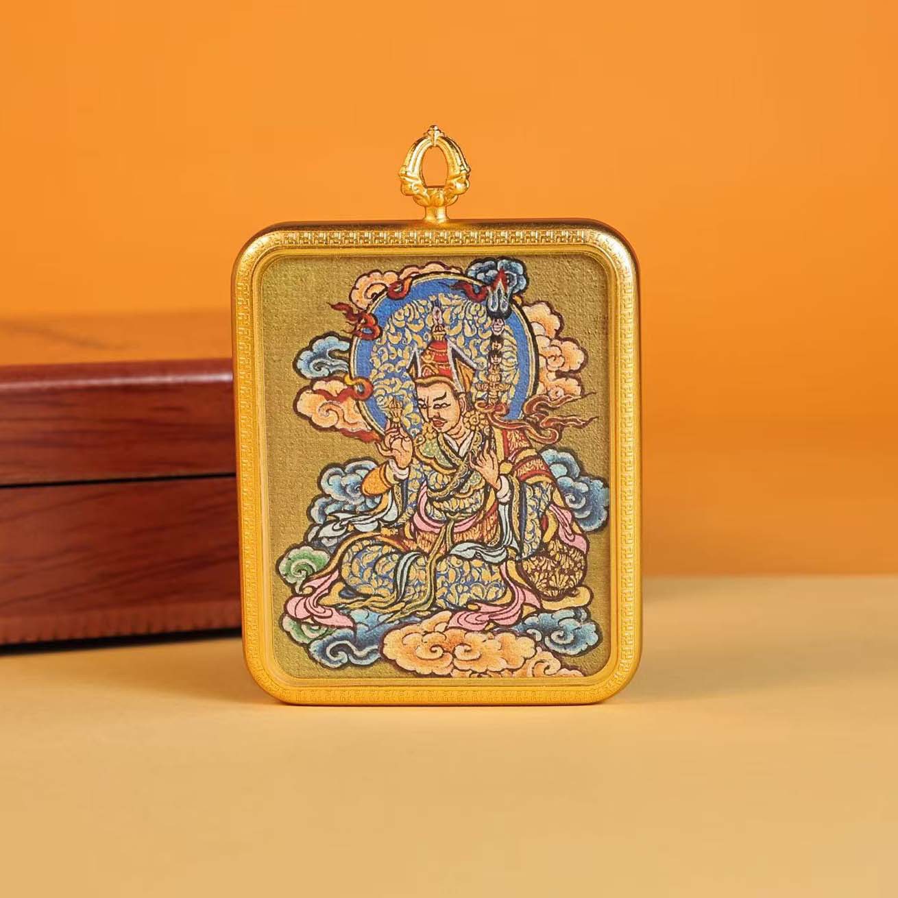 西藏唐卡半手绘热贡地藏王莲花生大士民族风藏式铜镀金吊坠嘎乌盒 English | 投诉