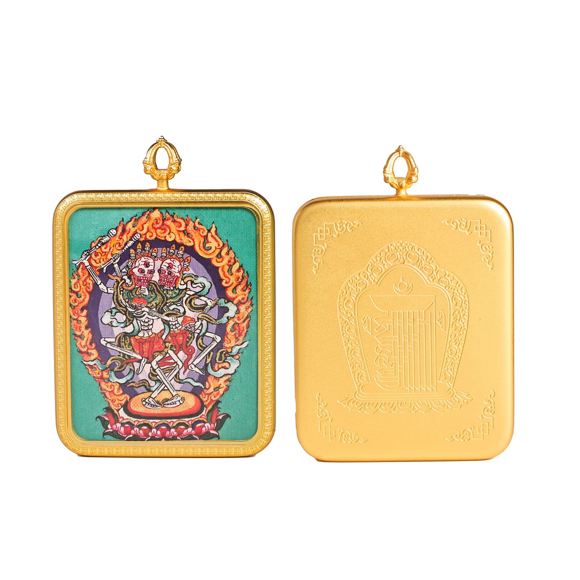 西藏唐卡半手绘热贡地藏王莲花生大士民族风藏式铜镀金吊坠嘎乌盒