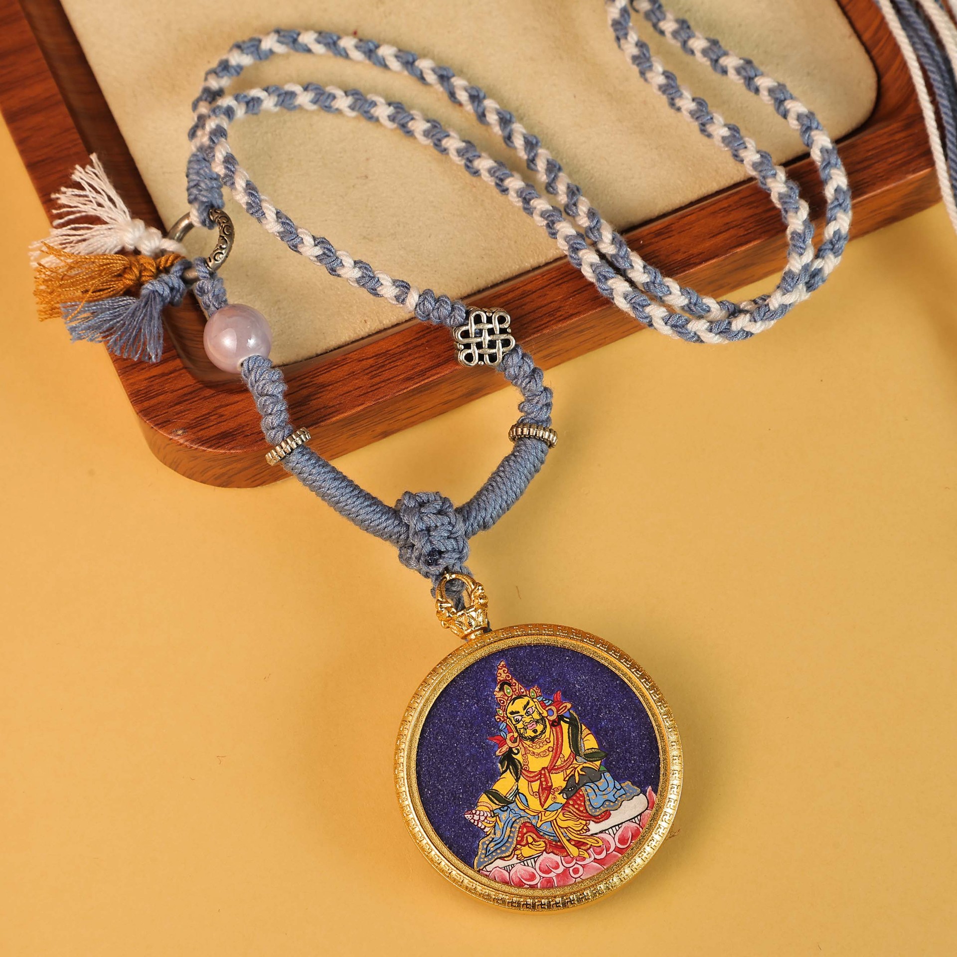 西藏唐卡手绘热贡黄财神绿度母地藏王守护民族风吊坠藏式嘎乌盒子 English | 投诉