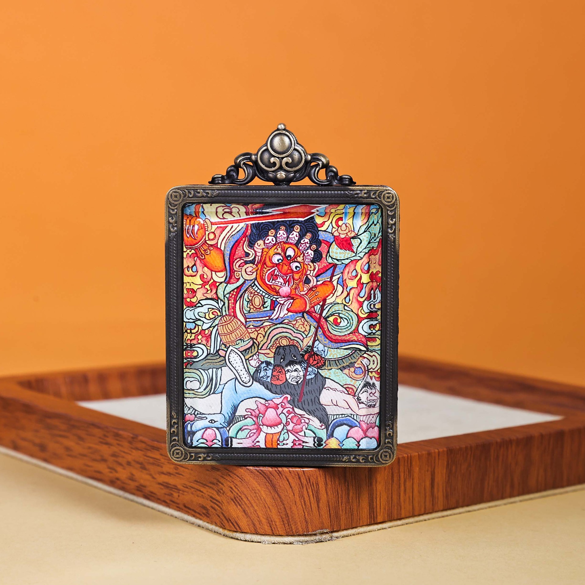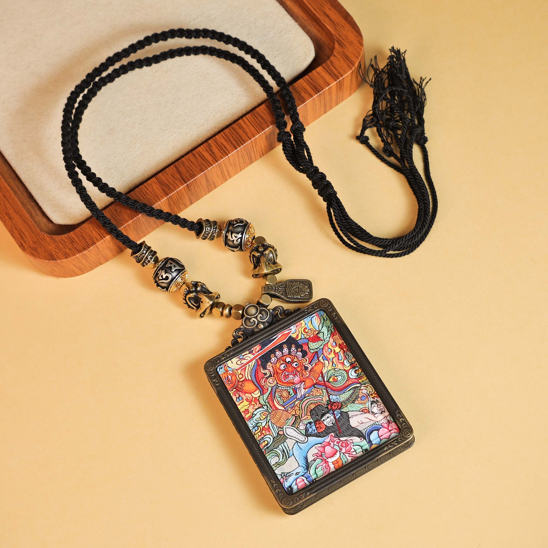 美飒藏式唐卡手绘西藏热贡红财神全手工民族风佛牌吊坠嘎乌盒子 English | 投诉