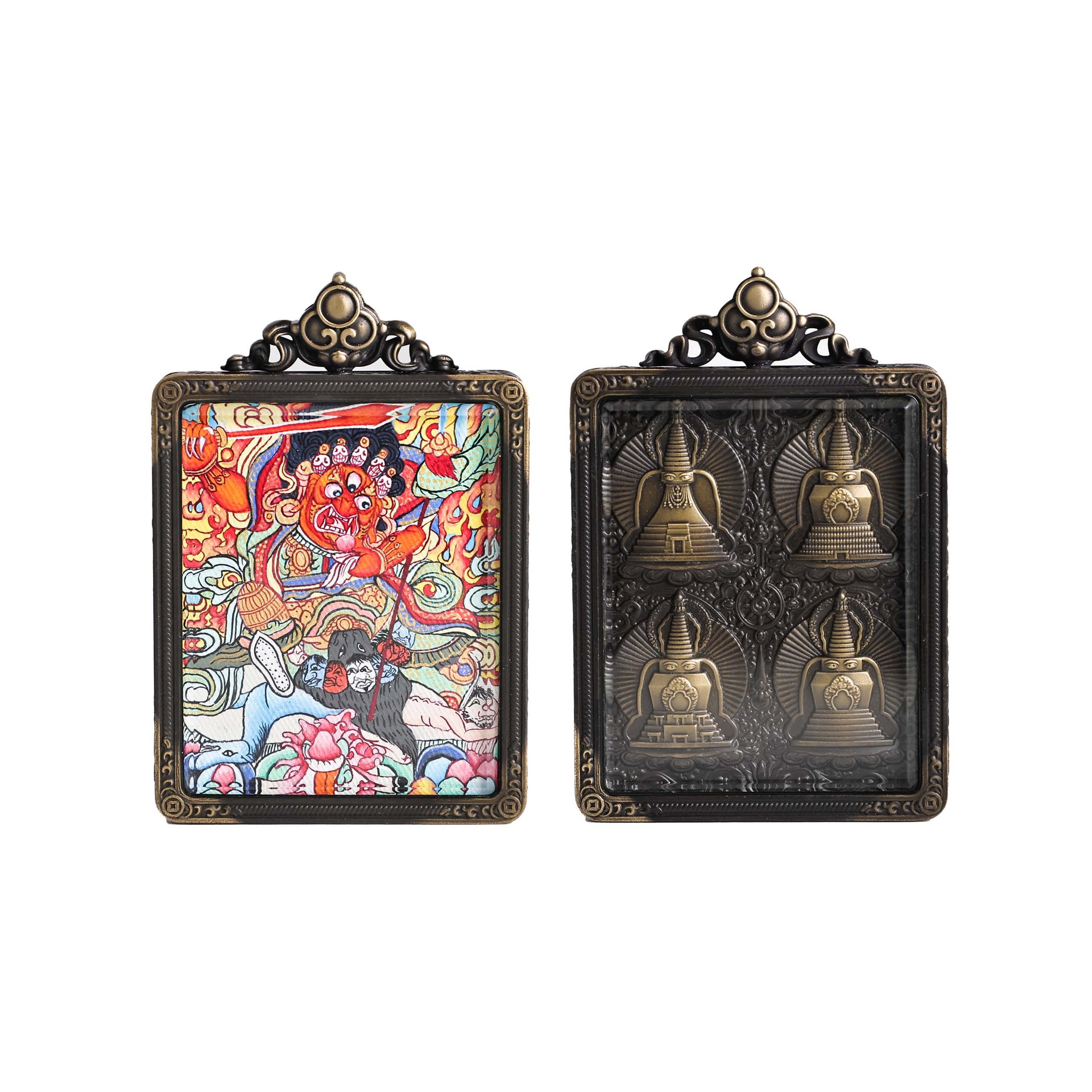 美飒藏式唐卡手绘西藏热贡红财神全手工民族风佛牌吊坠嘎乌盒子