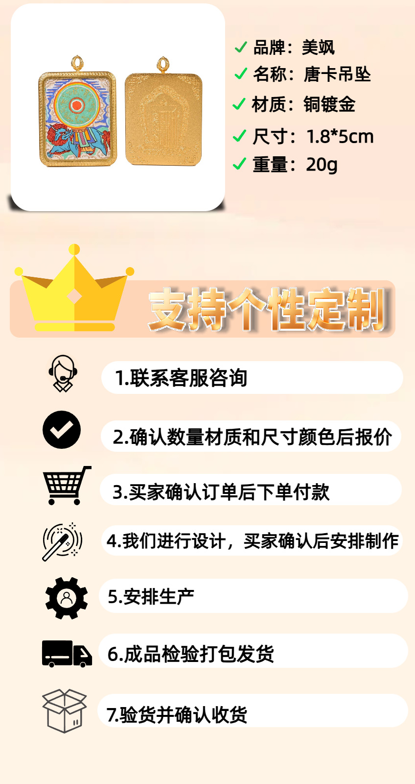 材质: 黄铜镀金 处理工艺: 镀金 品牌: 美飒 流行元素: 吉祥图案 风格: 民族风 造型: 长方形 货号: 6556 产地: 金华 主要下游平台: 淘宝,京东,快手,天猫,拼多多,抖音,垂 颜色: 金色,银色,经文款 有可授权的自有品牌: 否 是否跨境出口专供货源: 否 上市年份/季节: 2025年秋季 风格分类: 文艺复古 商品类型: 饰品 流行元素分类: 民族/国风 重量: 0.05 kg/件