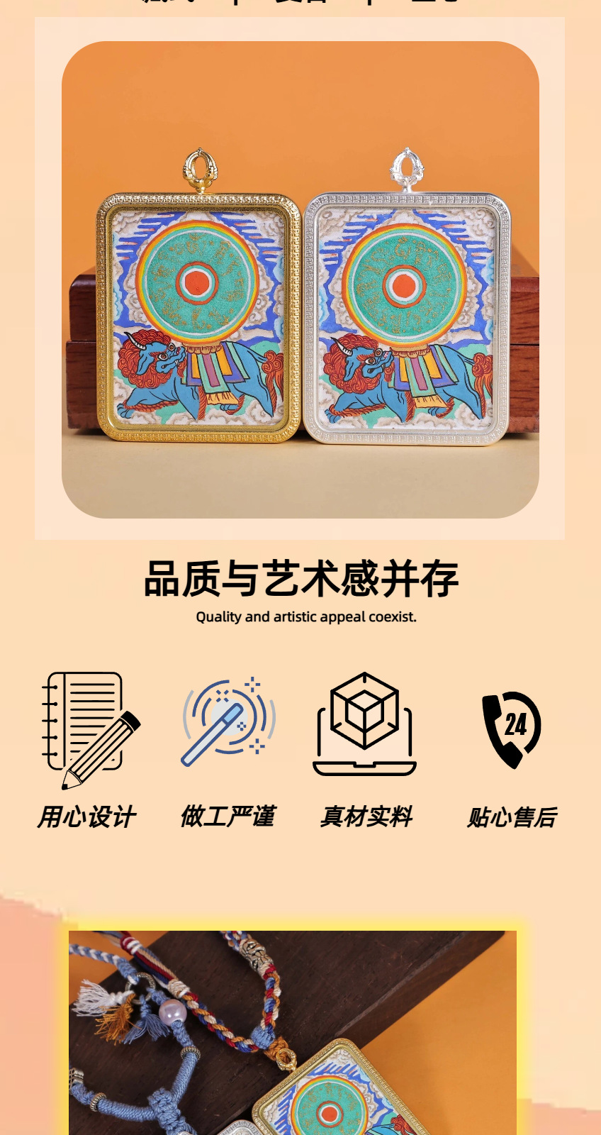 美飒唐卡手绘藏式谛听兽民族风复古吊坠高端佛牌热贡唐卡嘎乌盒子 English | 投诉