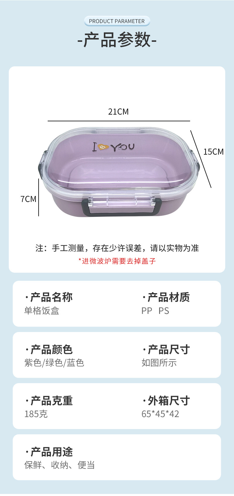 现货单格饭盒微波炉可用大容量保鲜盒便当盒学生饭盒上班用批发 English | 投诉