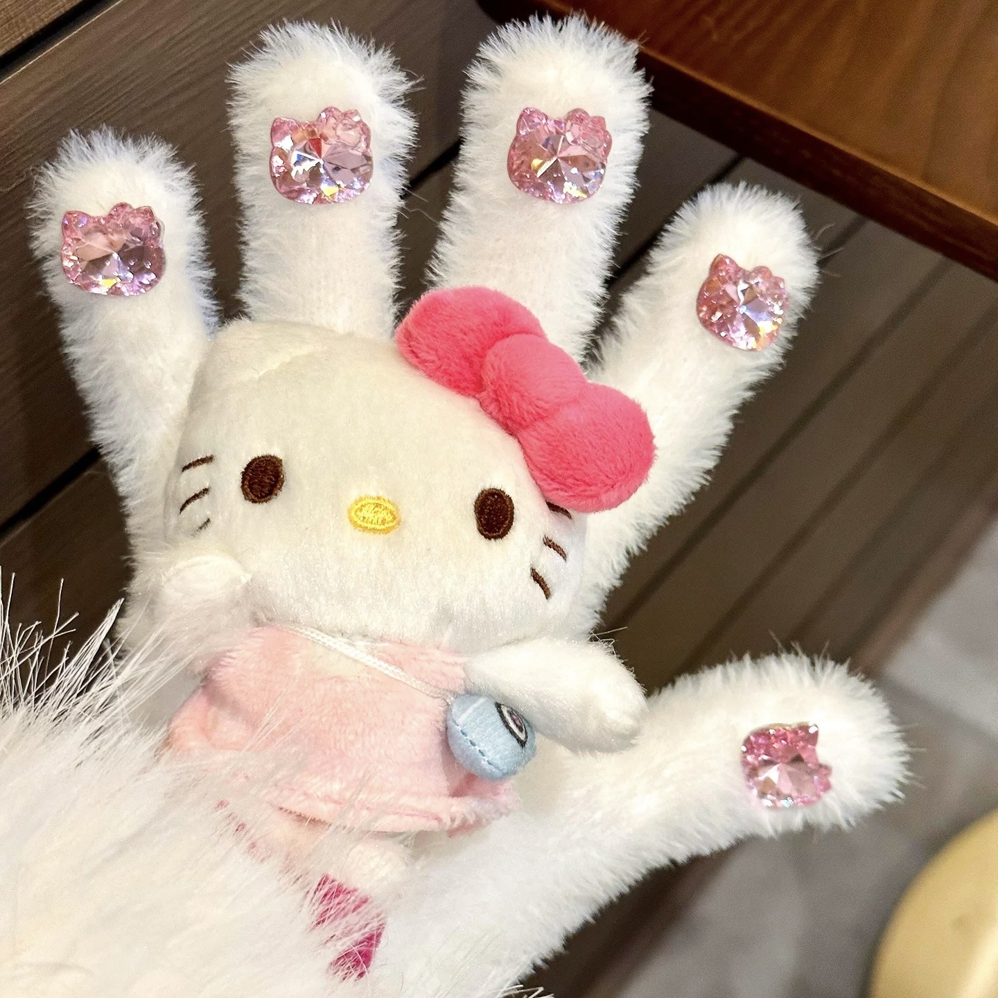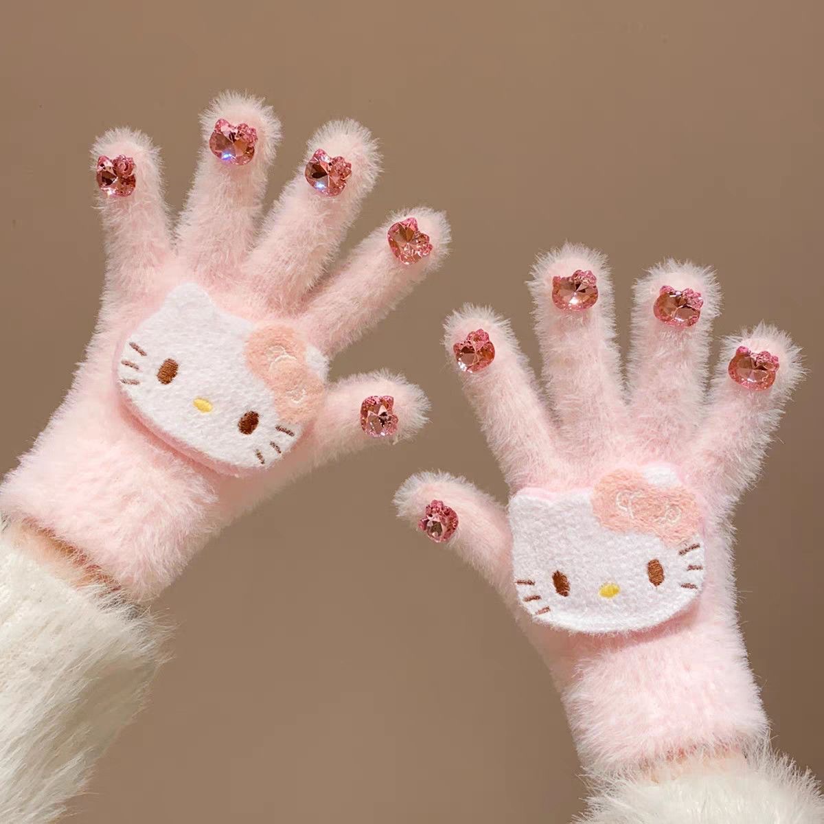 粉色水钻美甲Kitty手套女冬季毛绒加厚学生保暖可爱防寒防冻骑行 English | 投诉