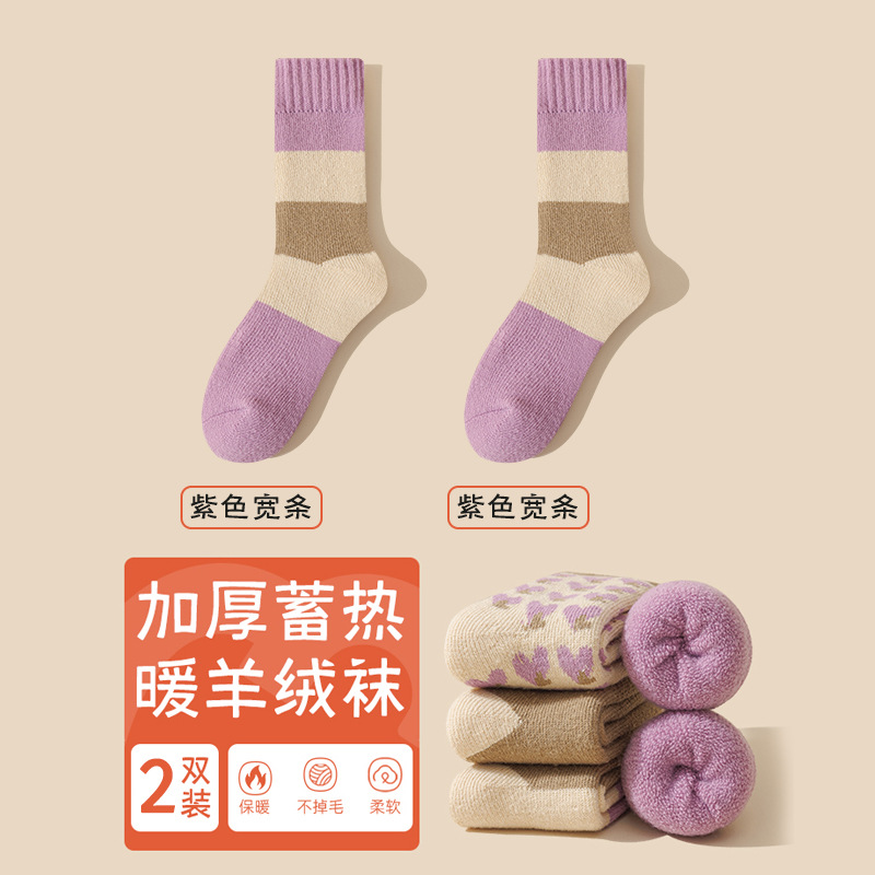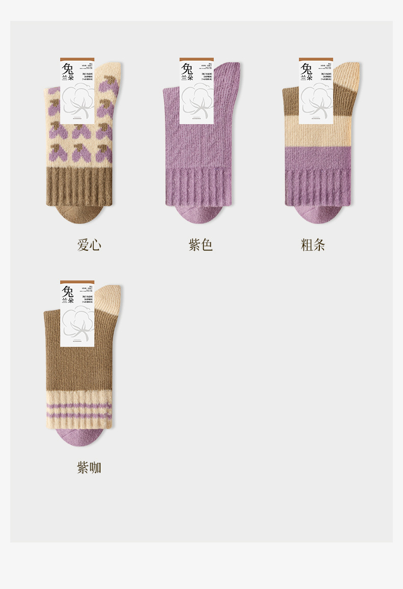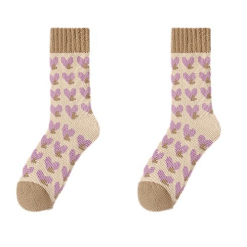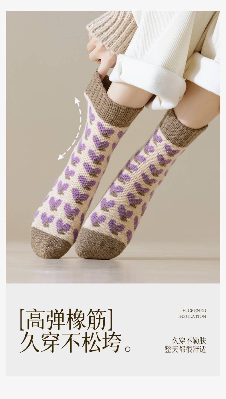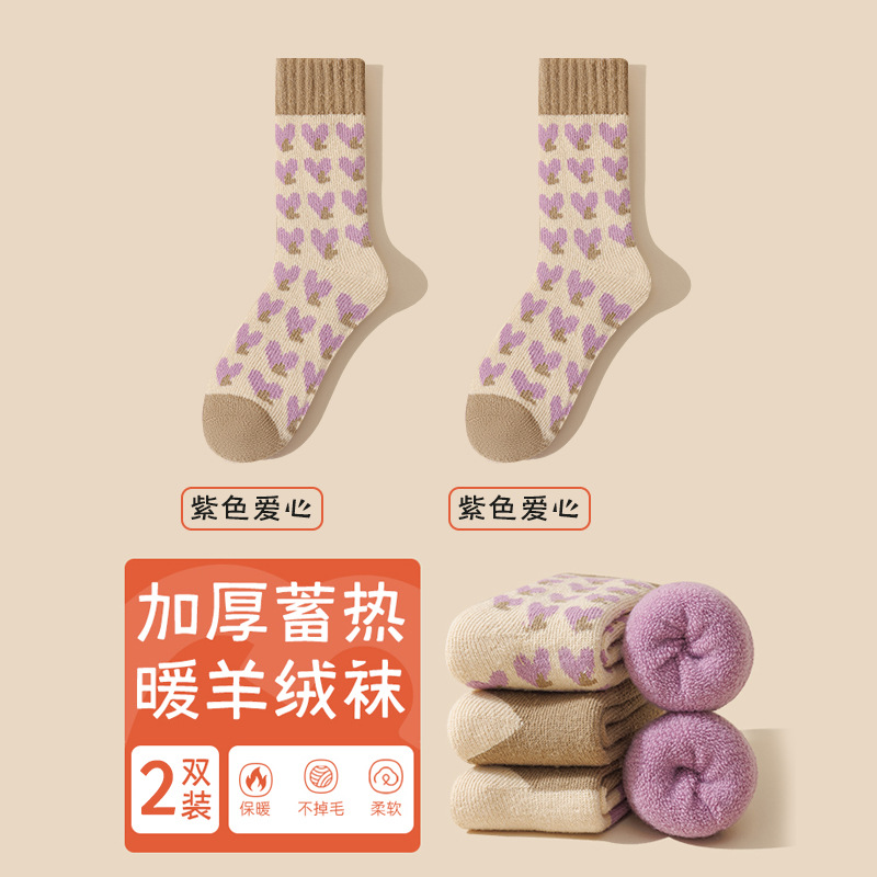 袜子女冬季加绒加厚保暖中筒袜紫色爱心睡眠地板月子毛圈长袜批发 English | 投诉