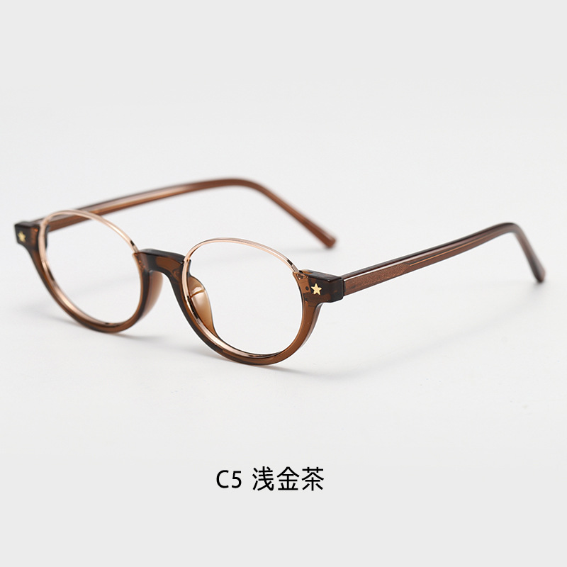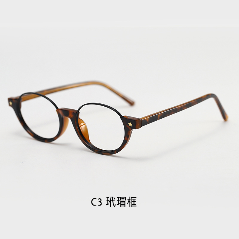 新款复古英伦防蓝光下半框女椭圆玳瑁书呆子眼镜近视时尚跨境韩系 English | 投诉