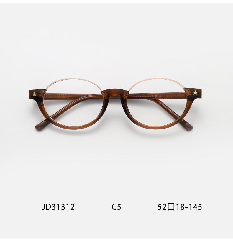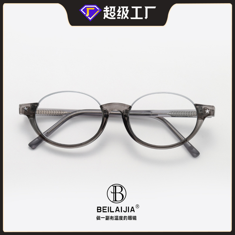 镜框材质: TR90 镜架材质: TR90 镜片材质: AC 产品类别: 防蓝光眼镜 镜片功能: 防蓝光 品牌: 贝莱佳 眼镜结构: 全框架 是否支持近视镜: 支持近视镜 流行元素: 星星 上市年份/季节: 2025年冬季 是否跨境出口专供货源: 是 货号: 31312 适用人群: 通用 产地: 台州 眼镜款式: 椭圆框 风格分类: 个性风潮 适合脸型: 圆脸 流行元素分类: 自然 重量: 0.5 kg/副