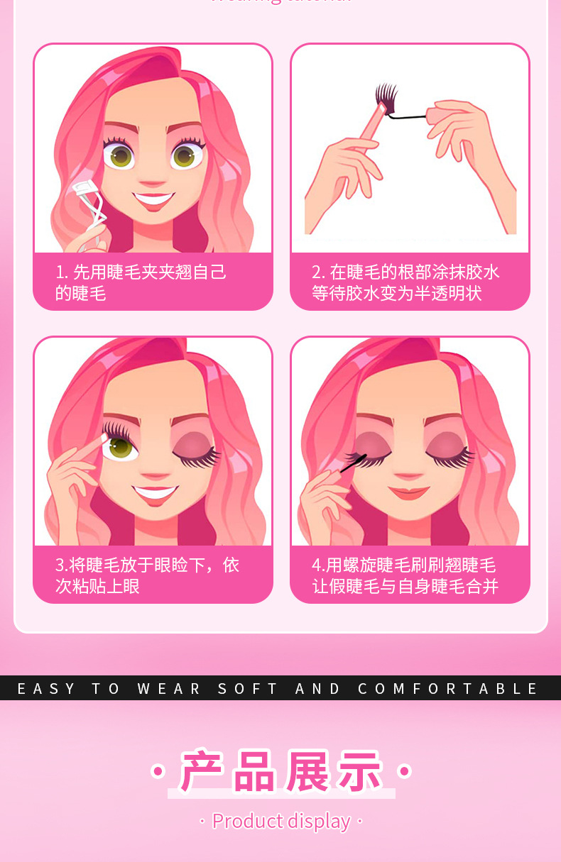 外贸款30P-100P混装大容量睫毛书新手友好硬梗免胶女团款假睫毛 投诉