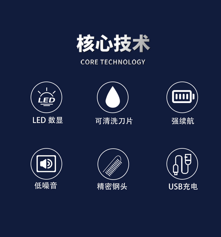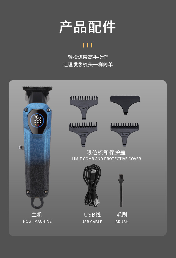 跨境理发器电推剪,家用剃头发电推子,油头雕刻理发店发廊美发工具。核心卖点:高效切割,低噪音设计,持久续航。产品优势:多档调节,精准雕刻,安全防夹。