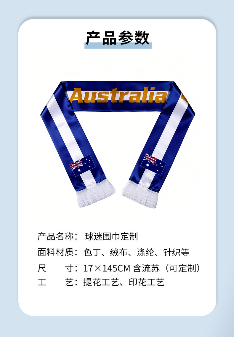 美加墨2026足球赛事球迷围巾定制logo跨境球迷围巾澳大利亚色丁