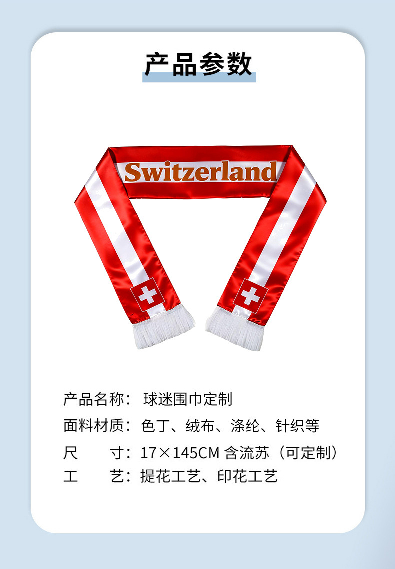 美加墨2026足球赛事球迷围巾定制logo跨境球迷围巾瑞士色丁涤纶 投诉