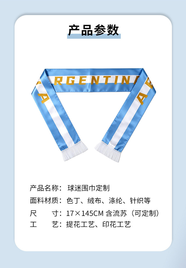 美加墨2026足球赛事球迷围巾定制logo跨境球迷围巾阿根廷色丁涤纶 投诉