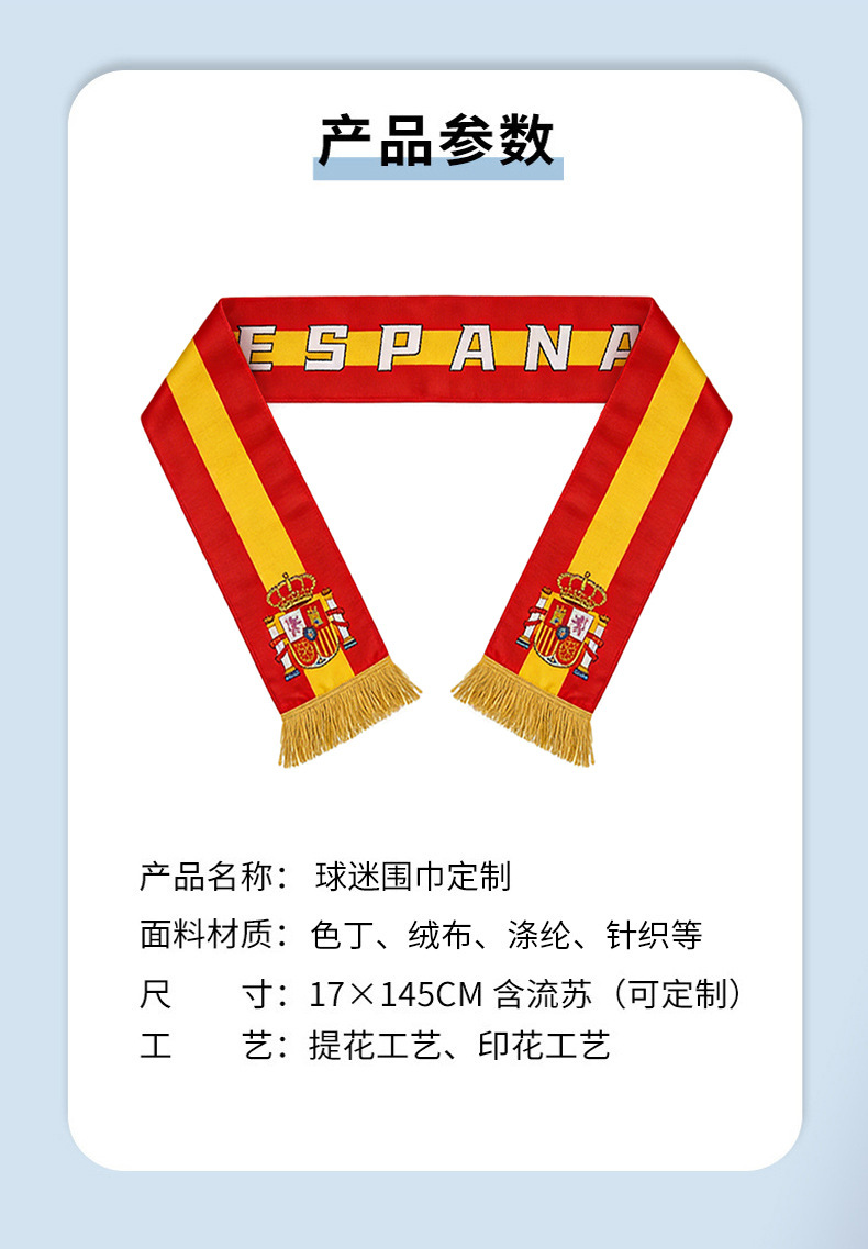 美加墨2026足球赛事球迷围巾定制logo跨境球迷围巾西班牙色丁涤纶 投诉