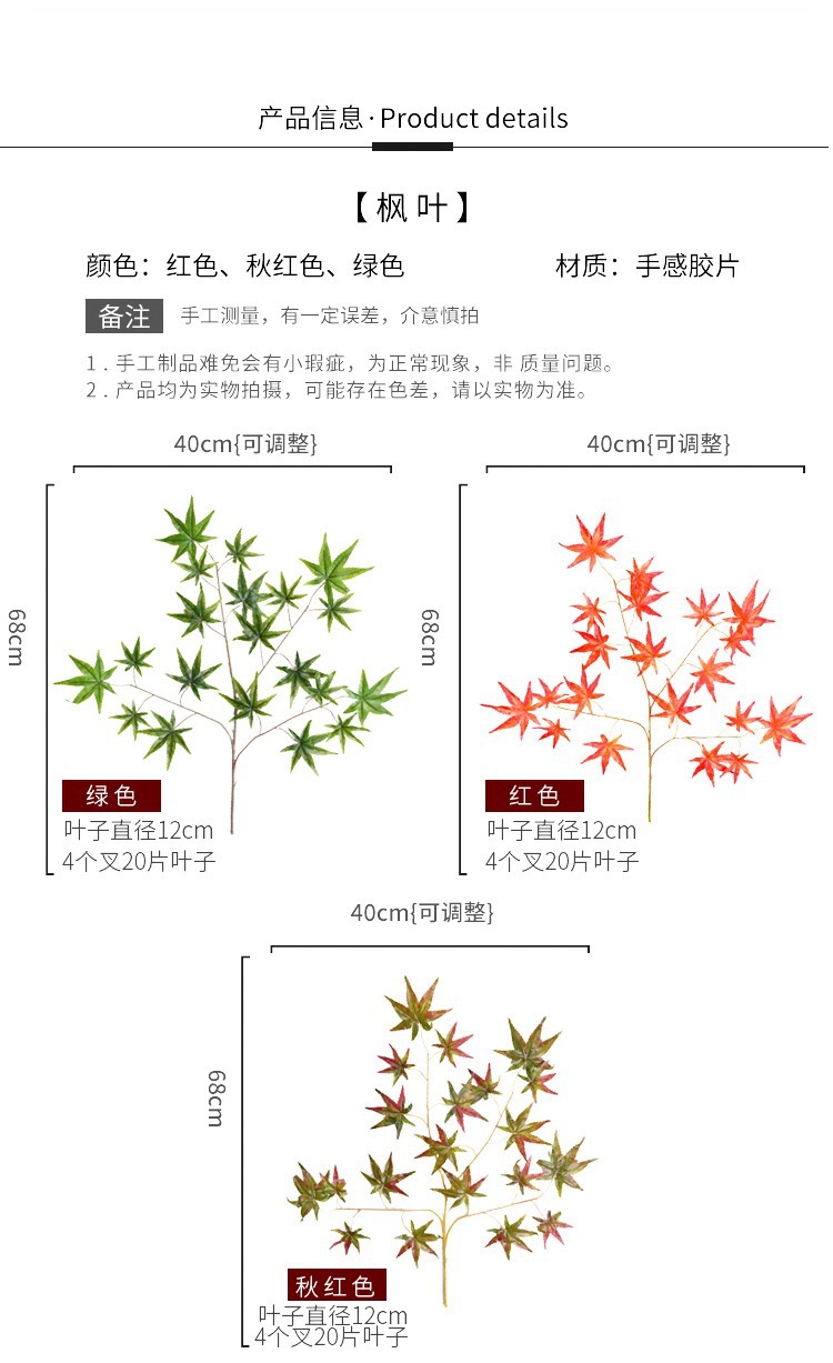 仿真鸡爪枫叶 手感胶布绿枫叶红枫叶园林工程装饰仿真枫树叶批发 English | 投诉