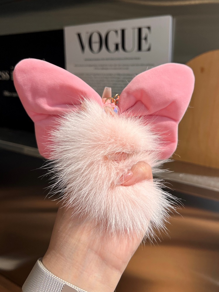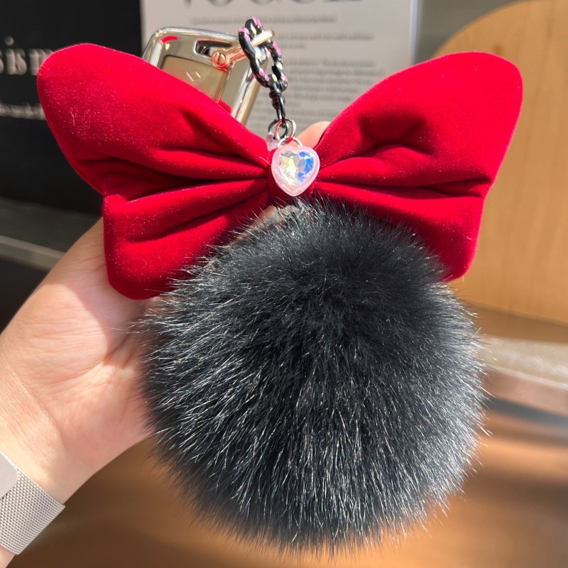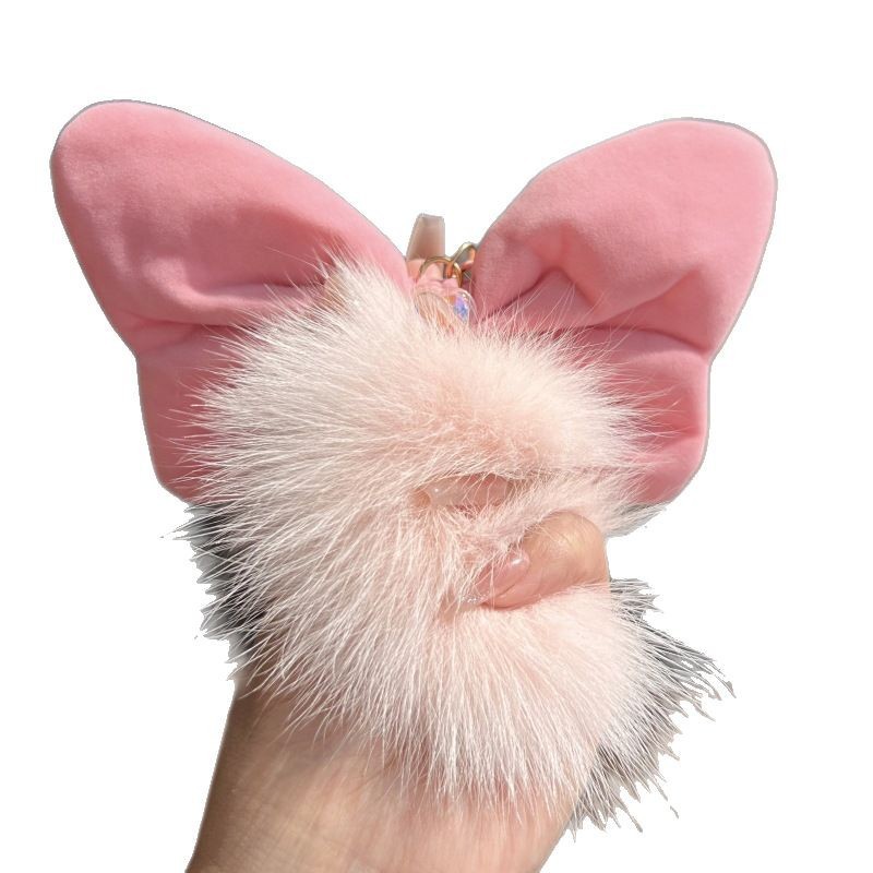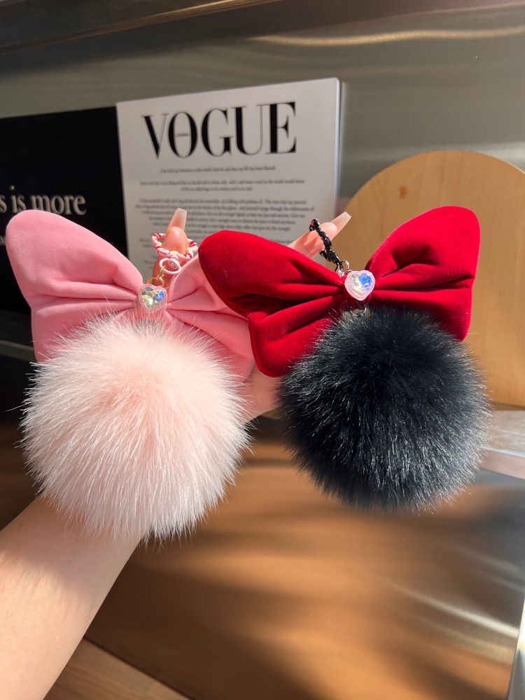 可爱女生狐狸毛球蝴蝶结可爱玩具玩偶批发挂饰包包毛绒挂件钥匙扣