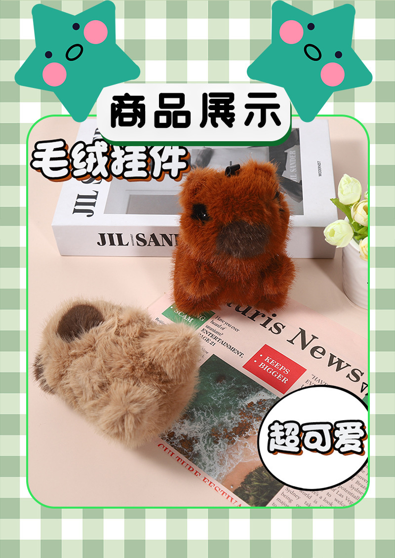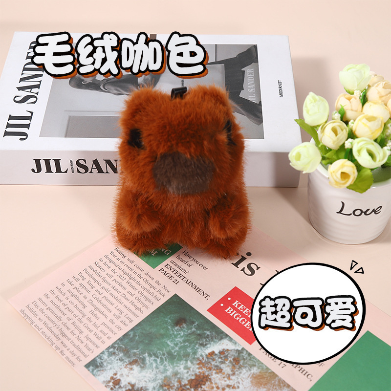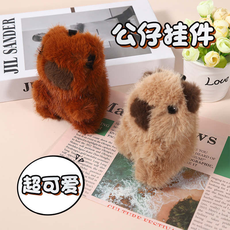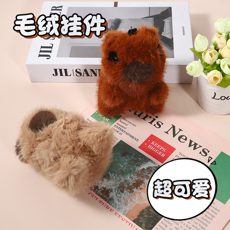 仿獭兔毛水豚卡皮巴拉汽车钥匙扣挂件毛绒公仔玩偶书包包挂饰卡通 English | 投诉