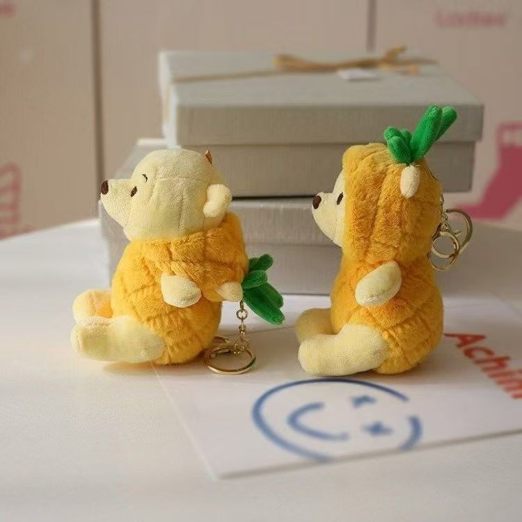 毛绒菠萝小熊卡通钥匙扣挂件玩偶ins情侣包包挂饰抓娃娃公仔批发 English | 投诉
