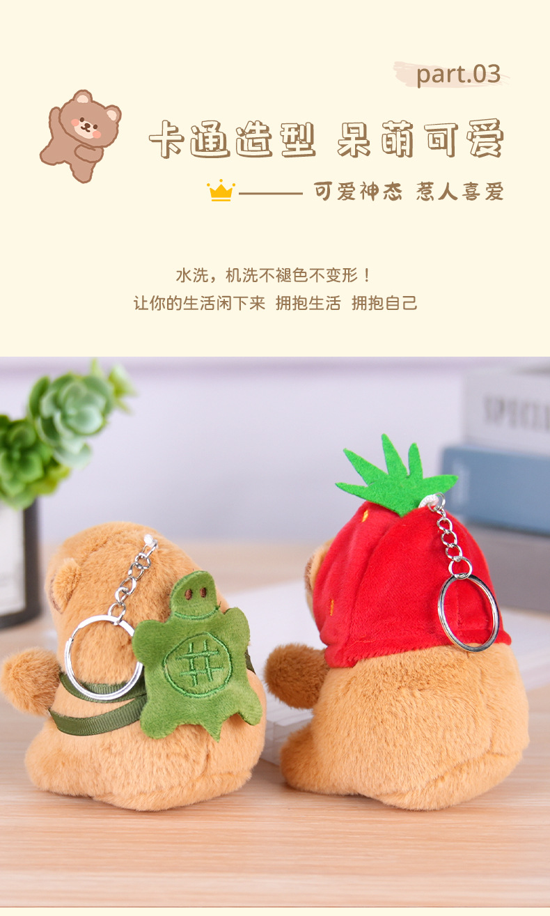 小红书卡皮巴拉草莓乌龟水豚挂件毛绒玩具公仔包包挂饰钥匙扣玩偶 English | 投诉