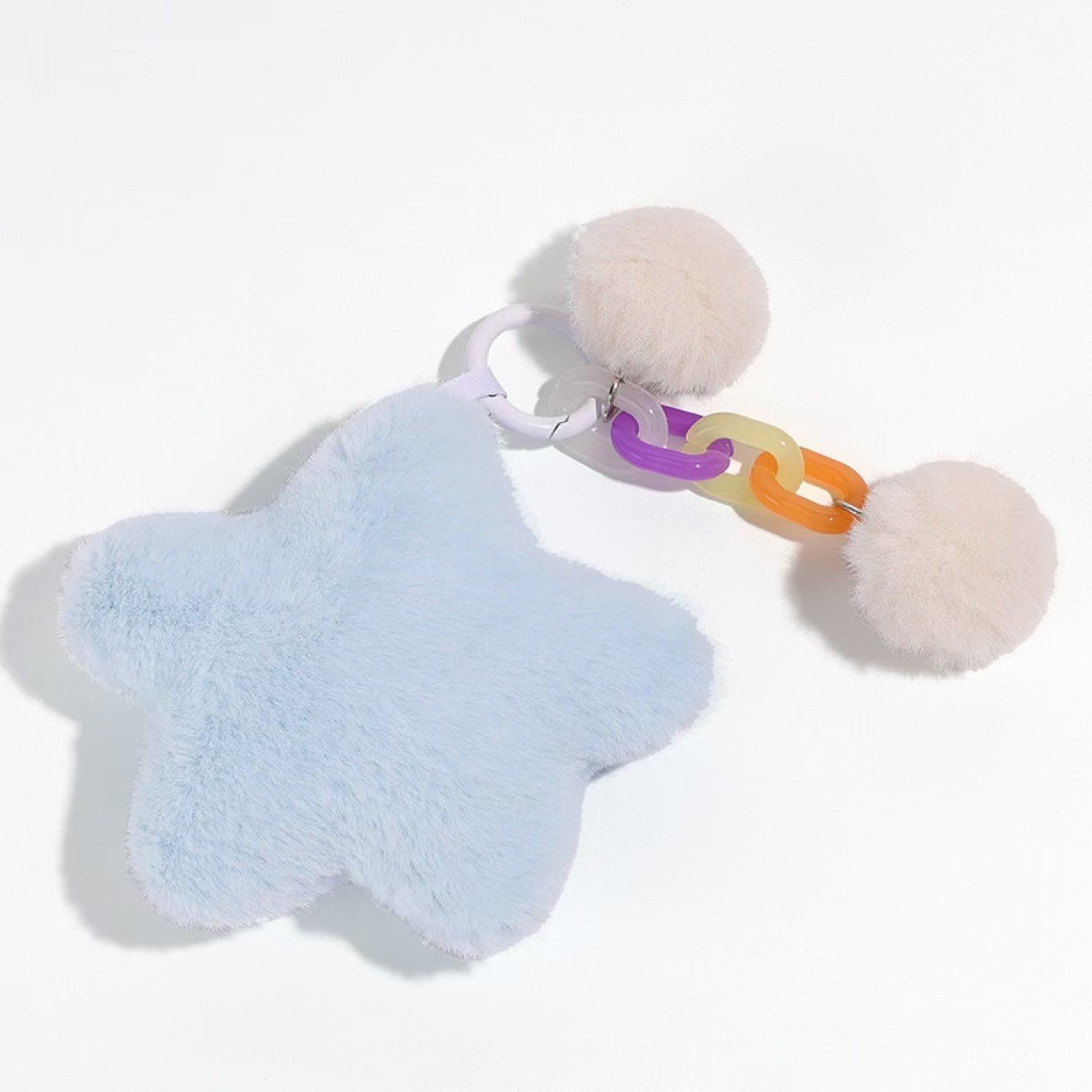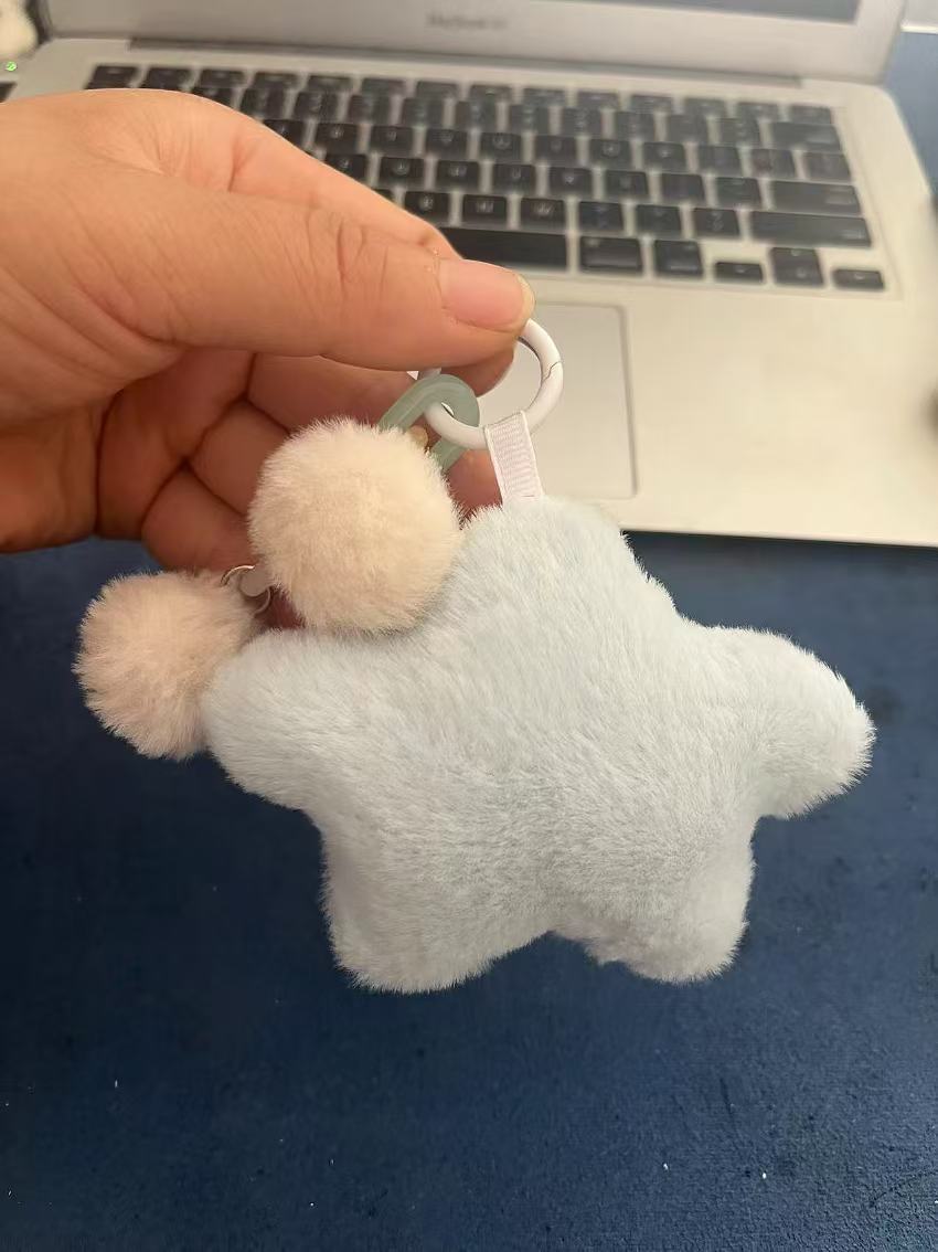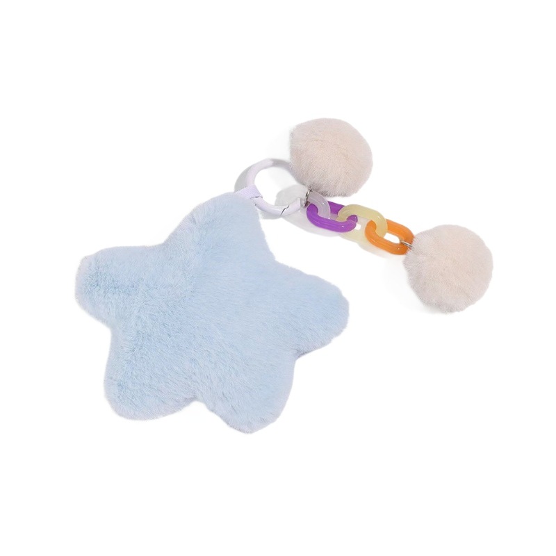 今年新款彩虹毛绒钥匙扣挂件五角星彩色玩偶diy配件包包挂饰礼物