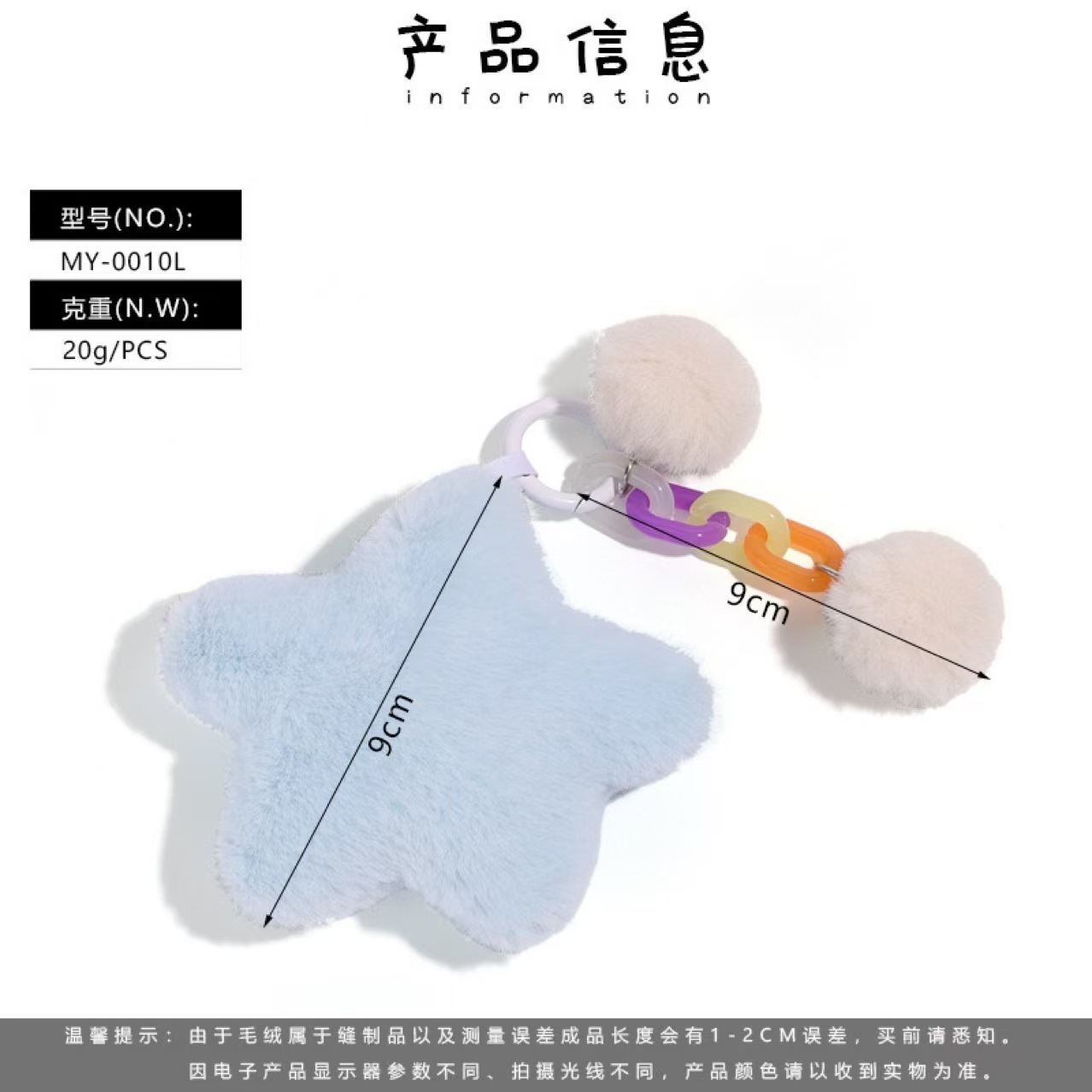 今年新款彩虹毛绒钥匙扣挂件五角星彩色玩偶diy配件包包挂饰礼物 English | 投诉