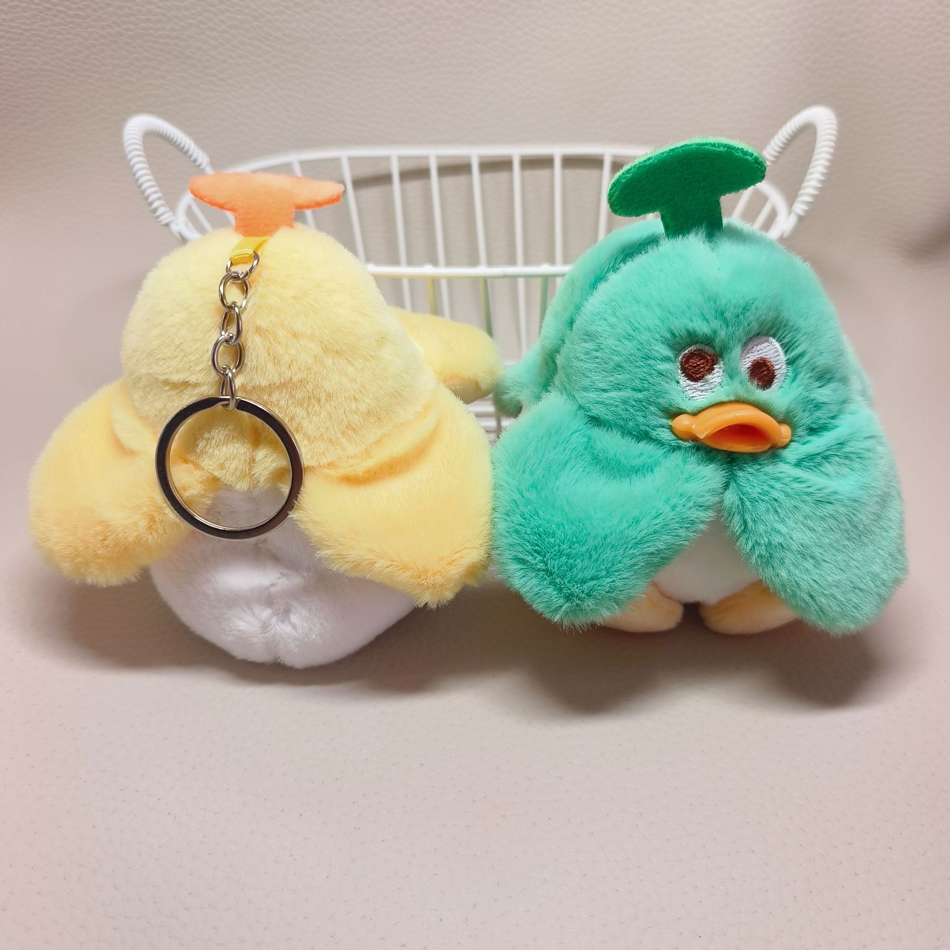 解压鸭梨鸭子毛绒钥匙扣公仔玩偶情侣挂饰办公室活动礼品小鸡挂件